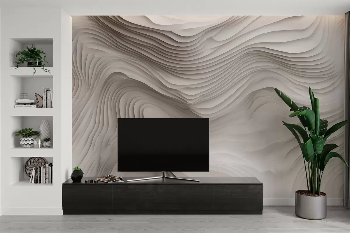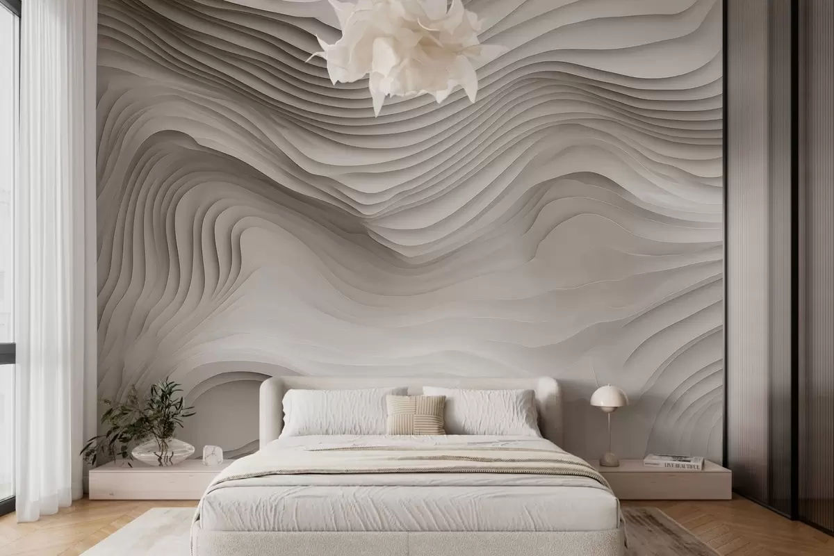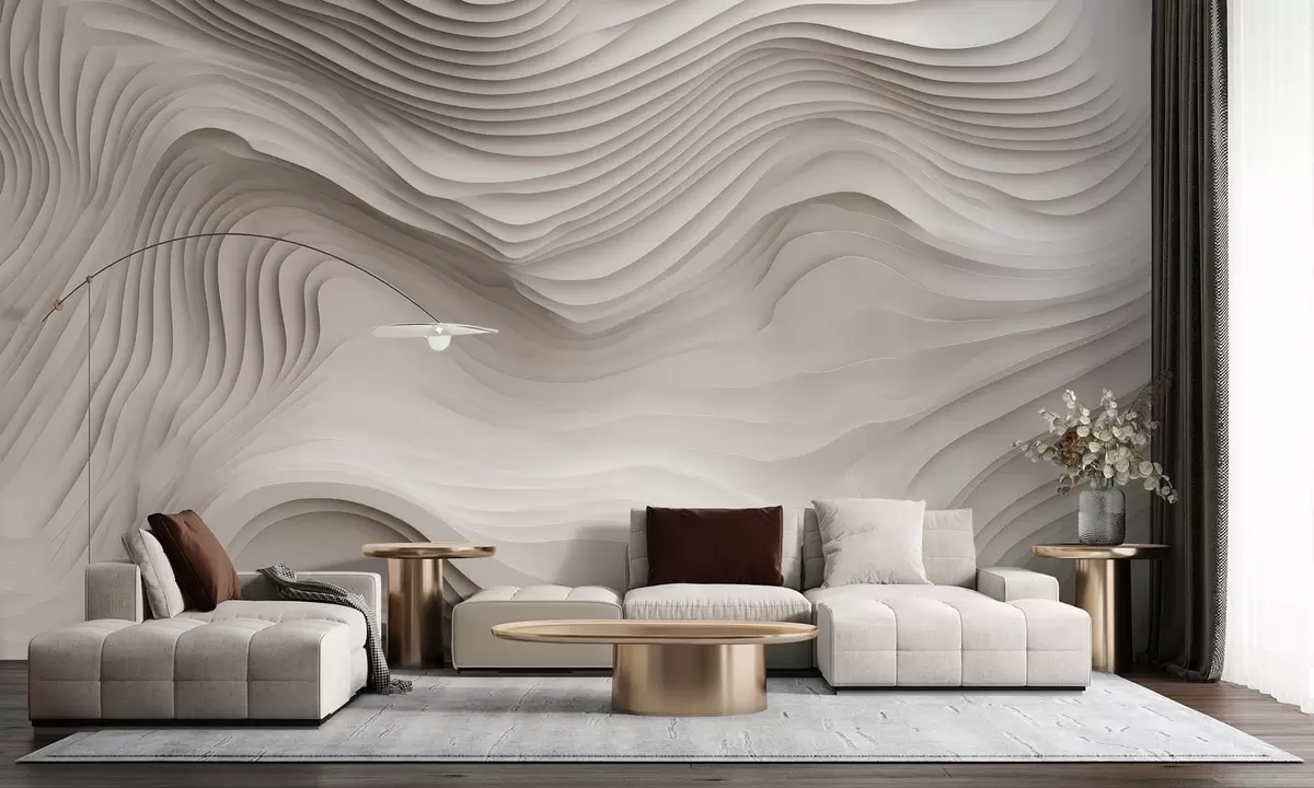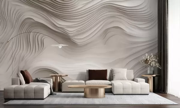 Fototapet imitație de reliefuri voluminoase în trepte, în tonuri de bej Nr. w05061v1