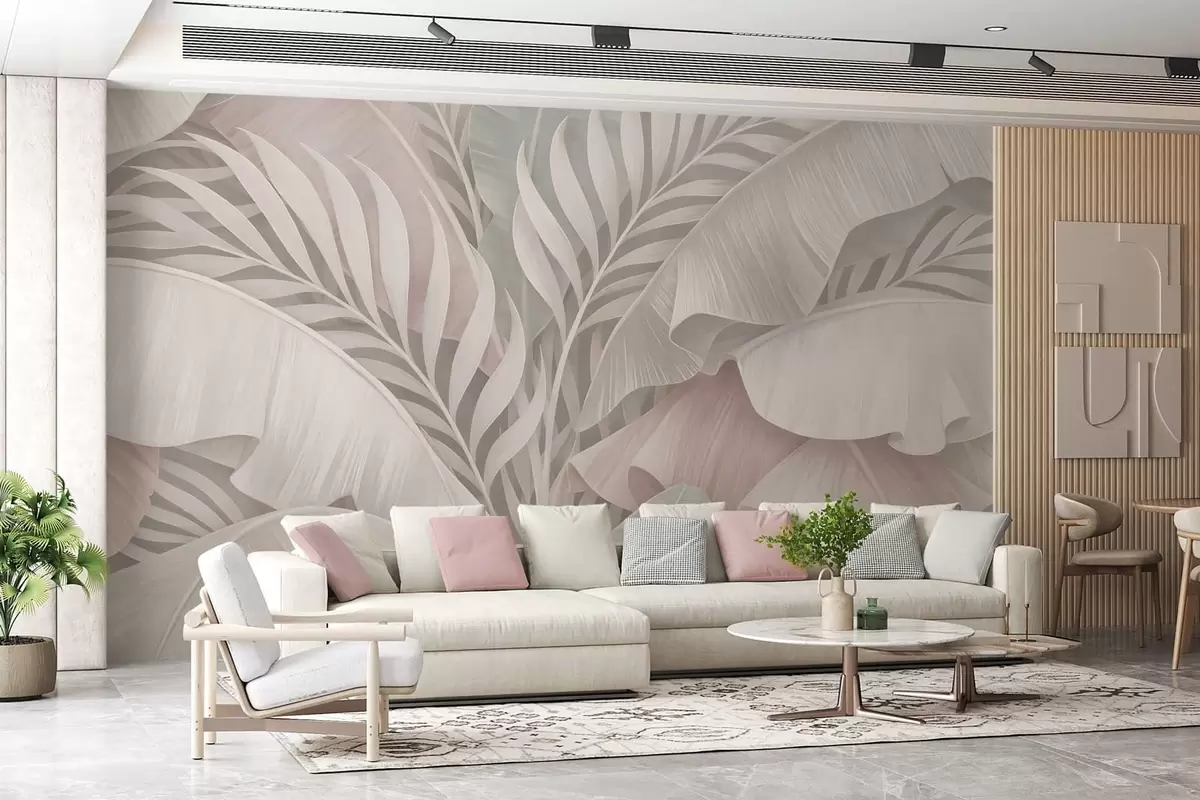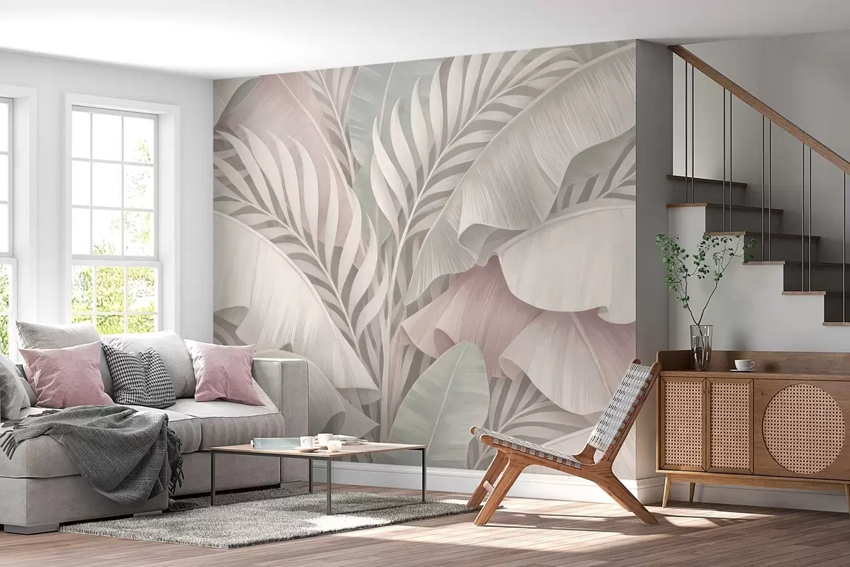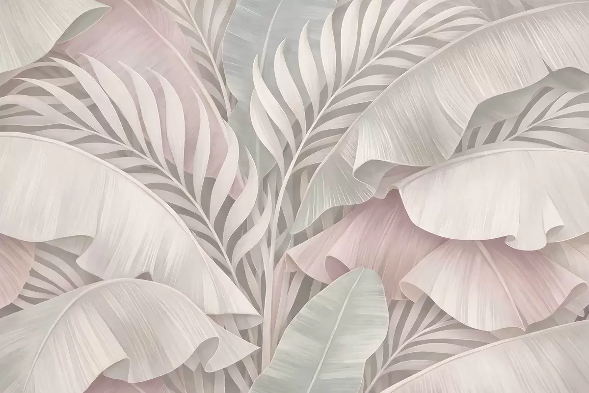 Fototapet frunze tropicale mari în nuanțe reci de roz și gri Nr. w05062v1