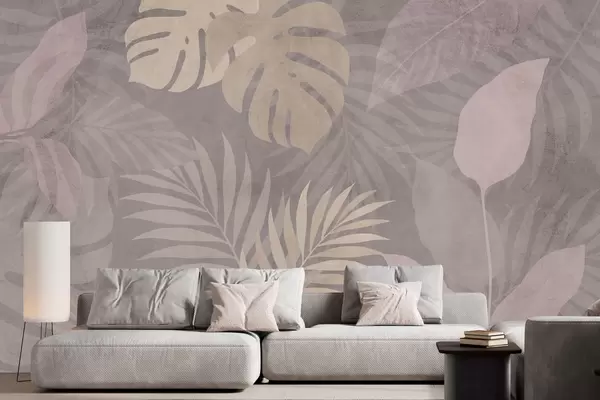 Fototapet frunze tropicale texturate pe fundal gri Nr. w05063v1
