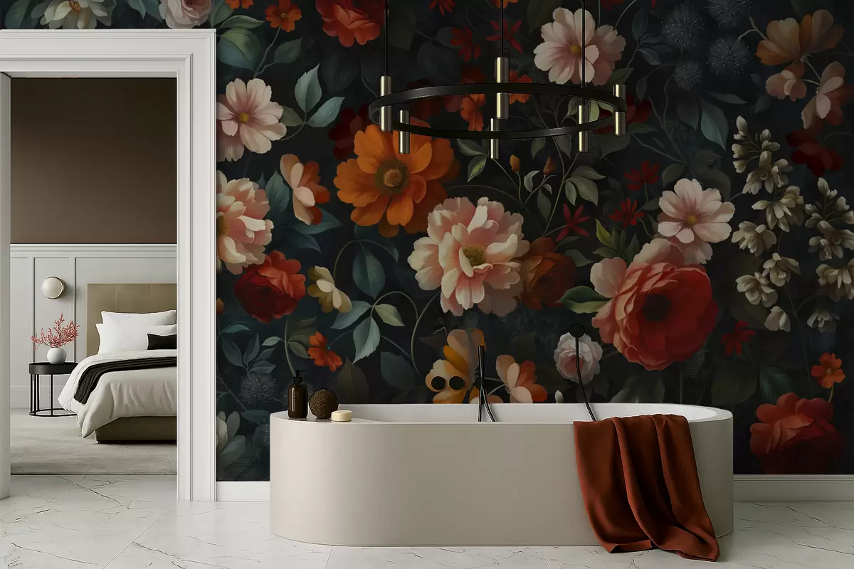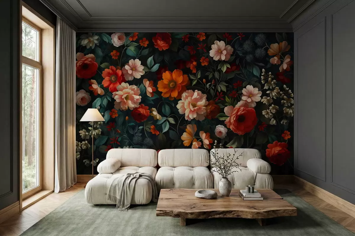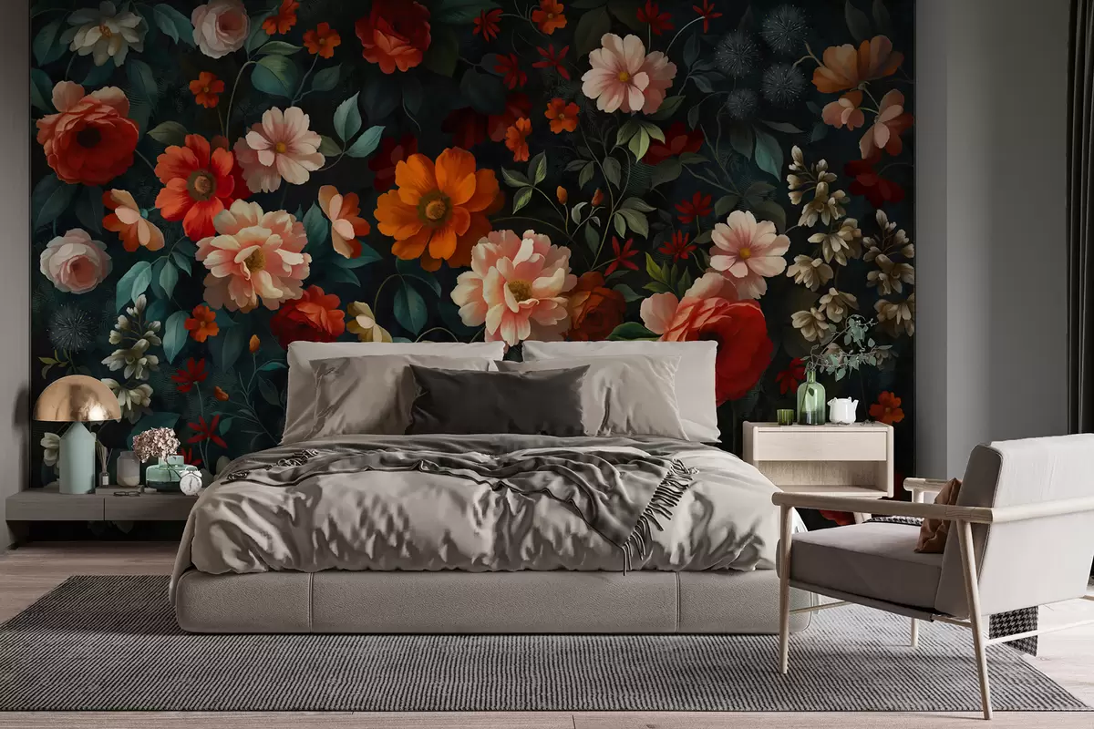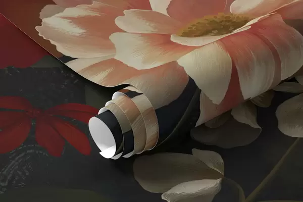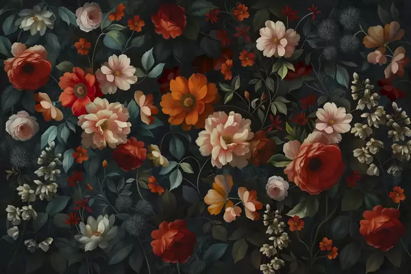 Fototapet Model floral închis la culoare, cu flori luxuriante de grădină Nr. w05087