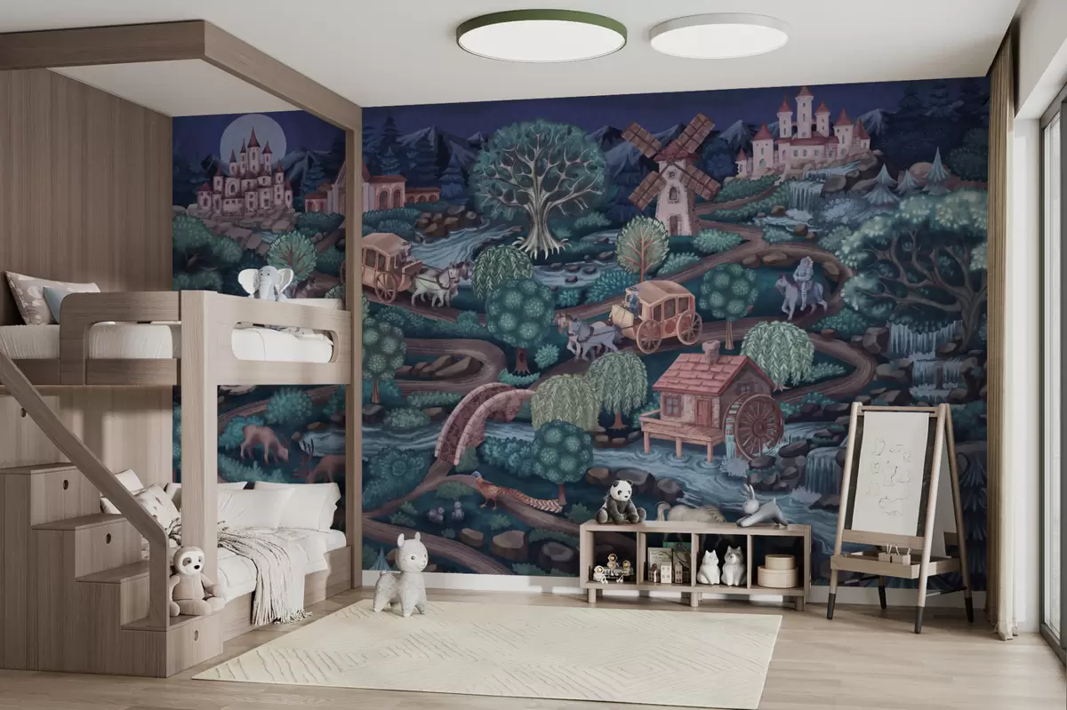 Fototapet Scena nocturnă cu castele, mori și pădure Nr. w05091