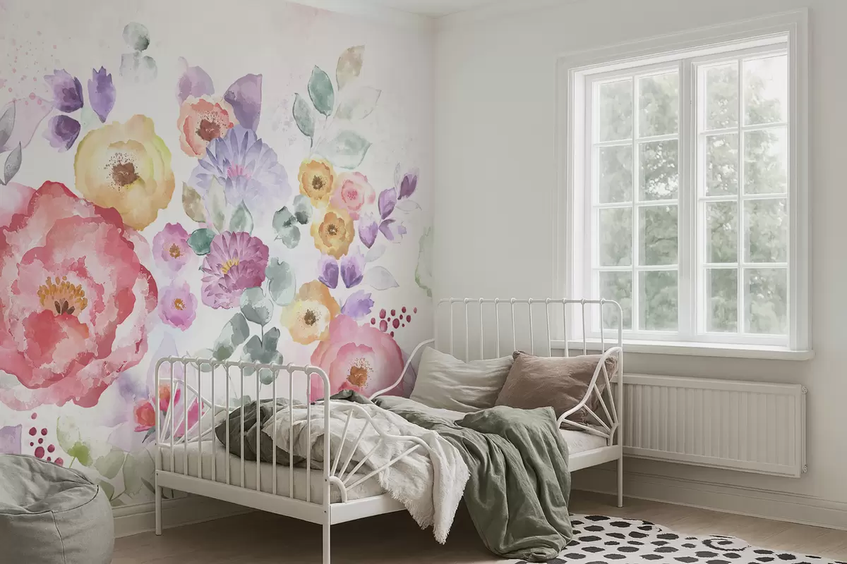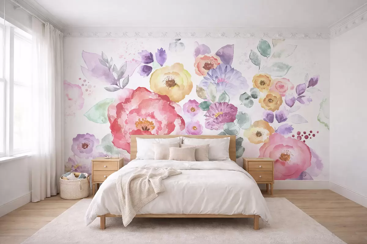 Fototapet Flori pastelate în acuarelă pe un fundal deschis Nr. w05093v1