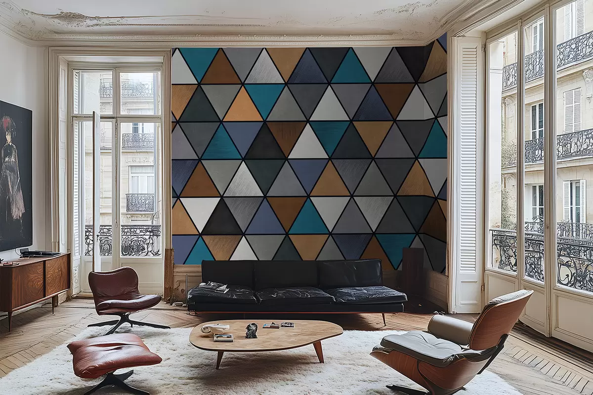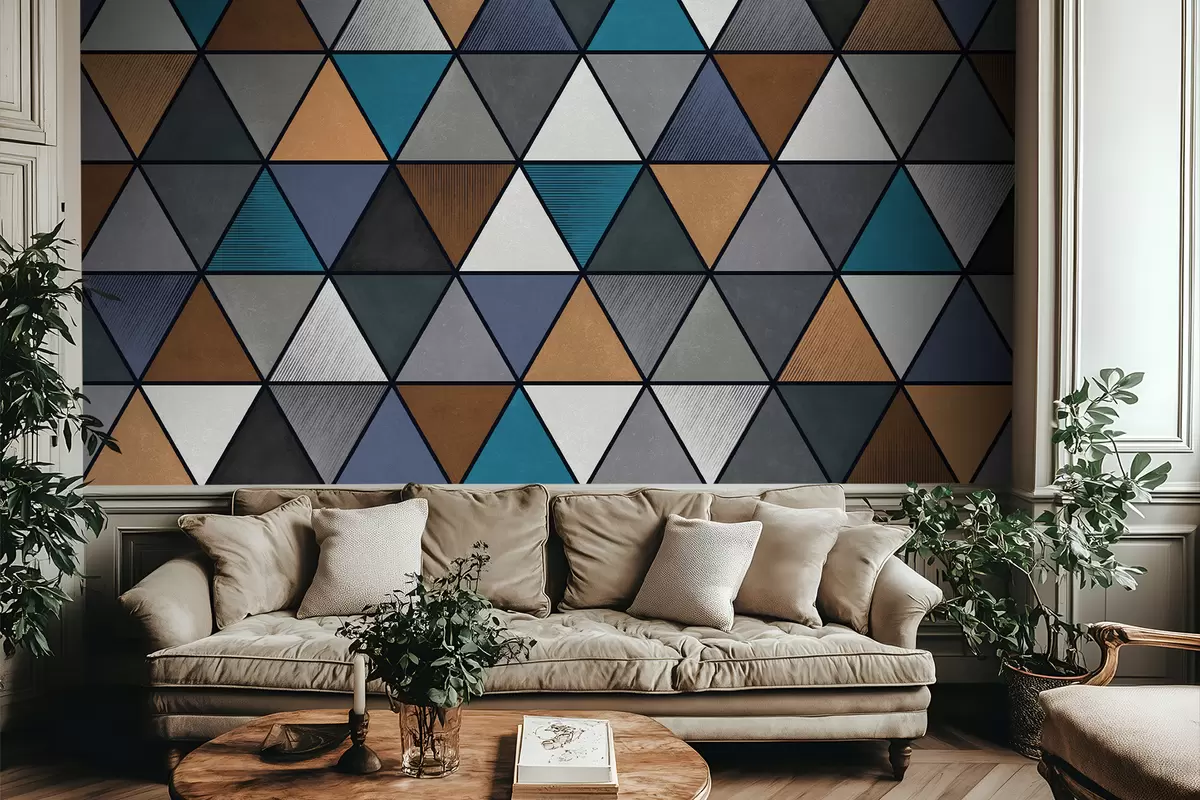 Fototapet Model geometric triunghiular în tonuri de albastru și culori calde Nr. w05095