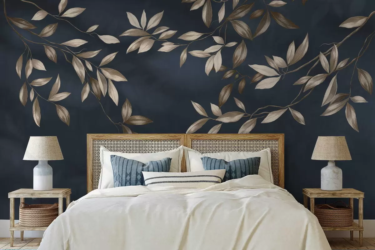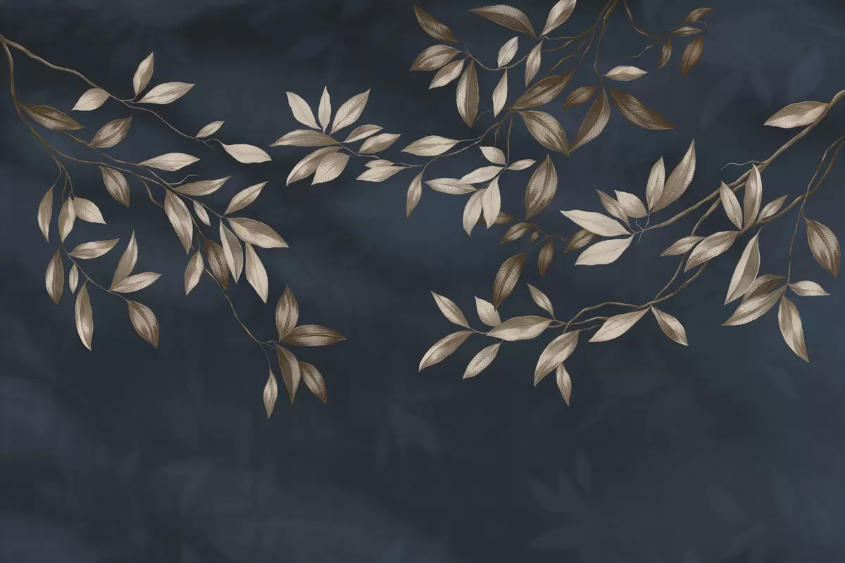 Fototapet Ramuri decorative cu frunze pe un fundal albastru intens Nr. w05113v1
