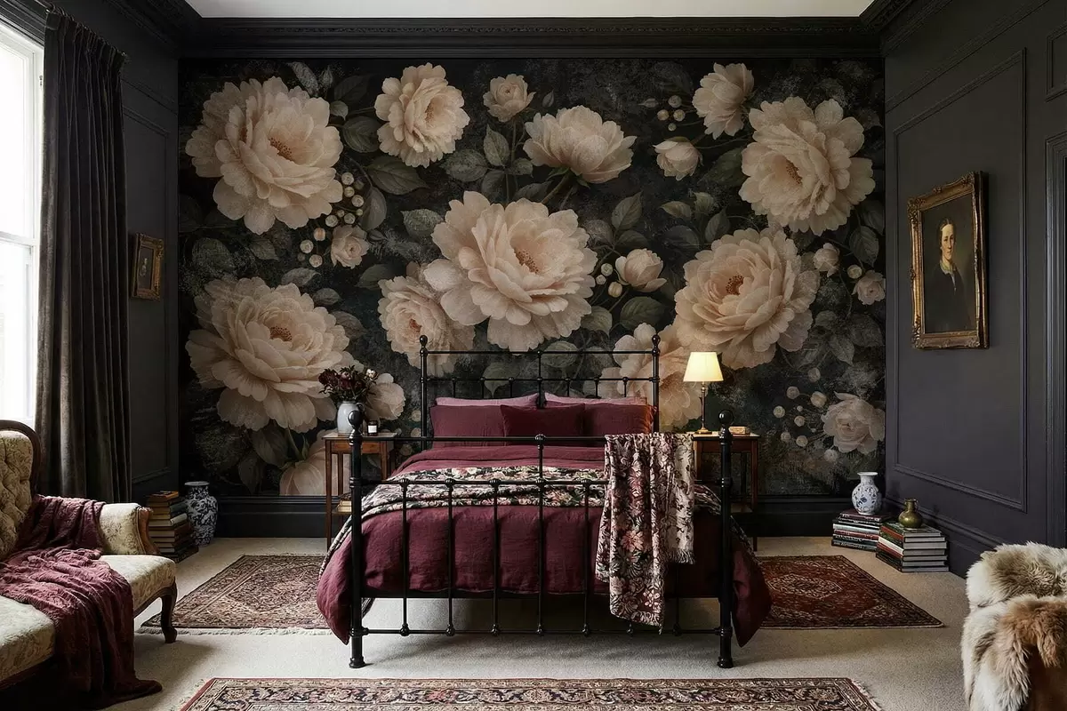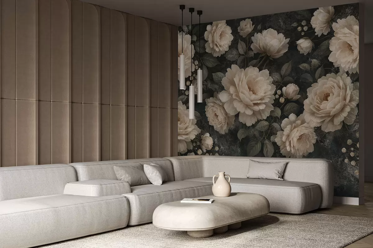 Fototapet Flori voluminoase în paleta de bej pe un fundal întunecat Nr. w05114