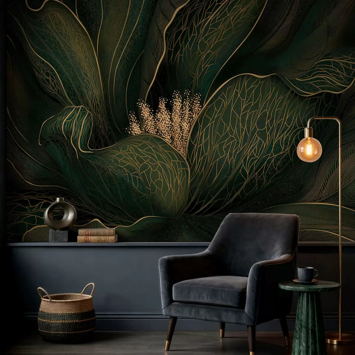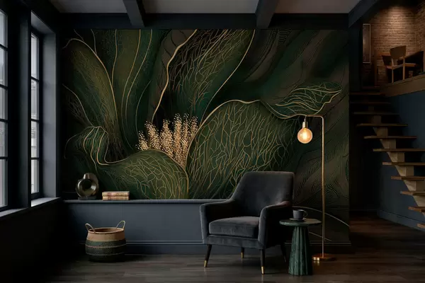 Fototapet Floare abstractă de culoare verde închis, cu detalii realizate cu linii fine Nr. w05119v1