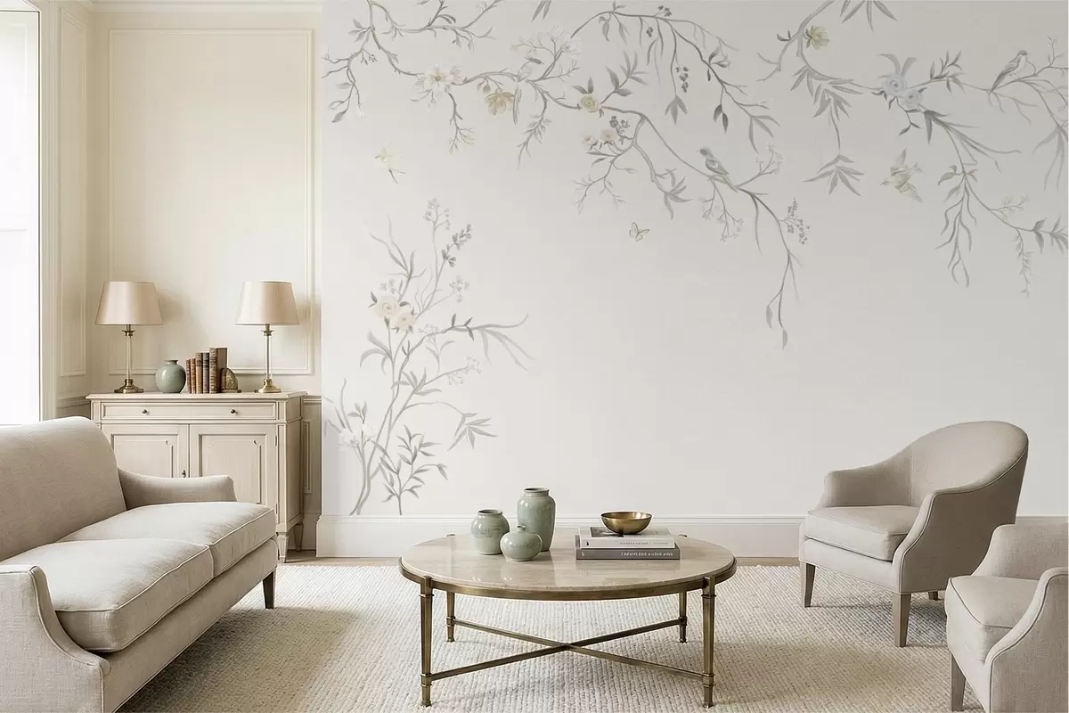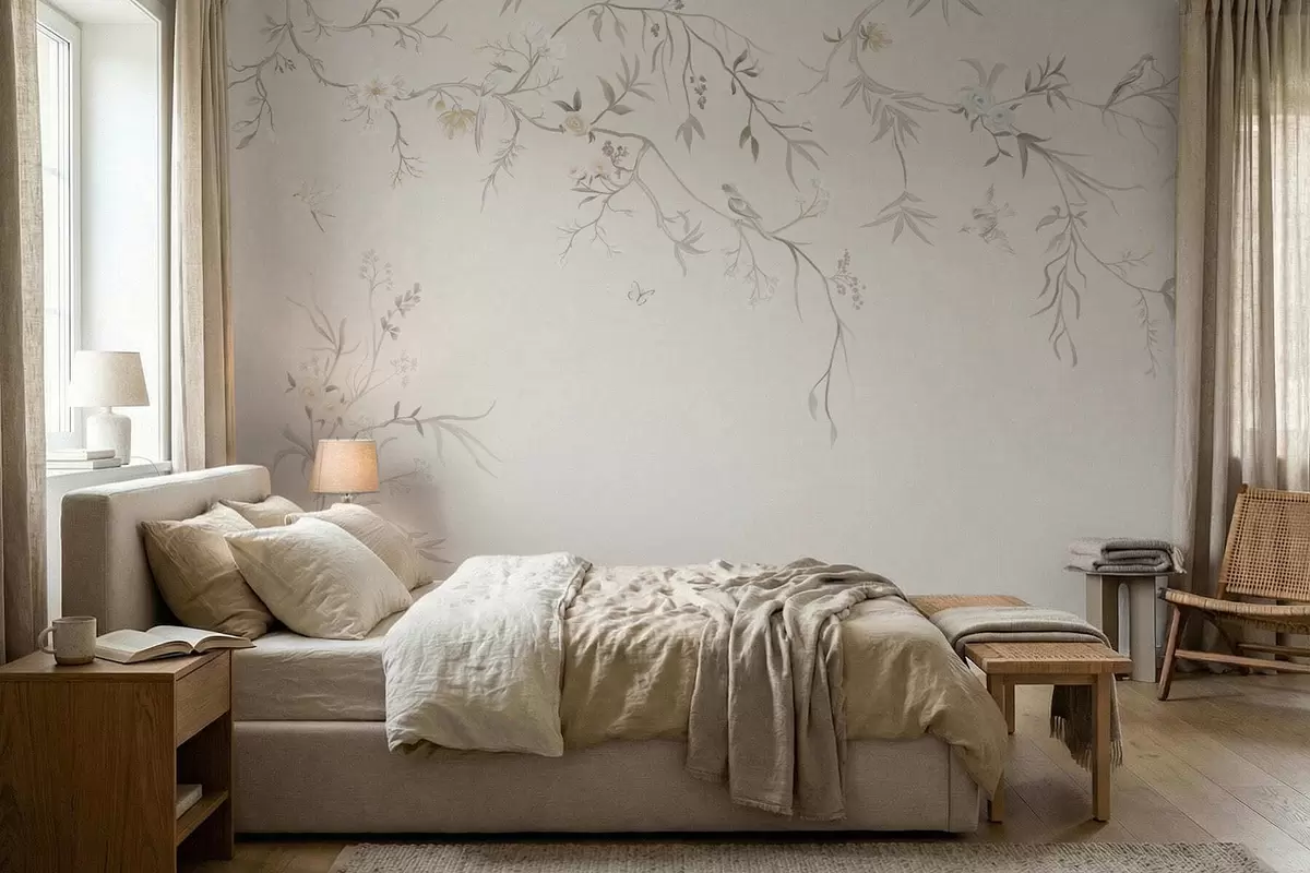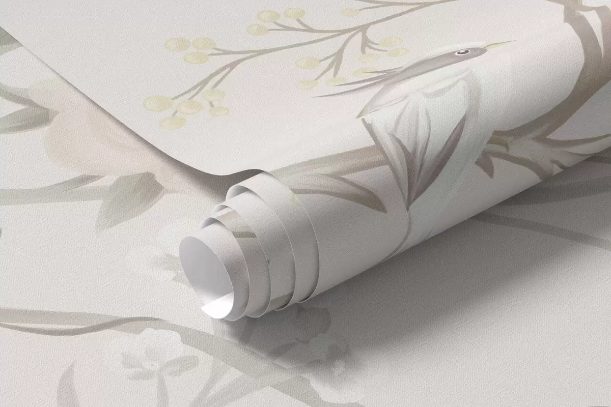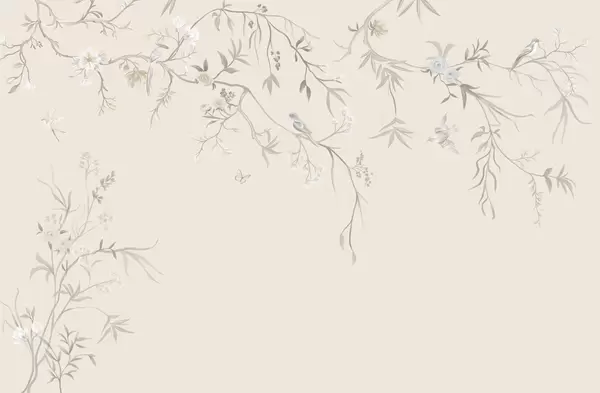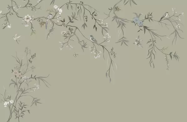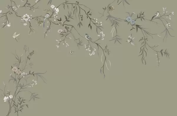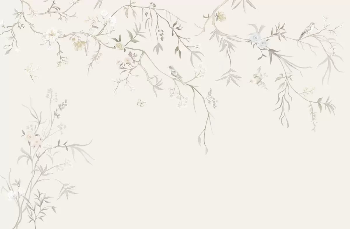 Fototapet Flori delicate și păsări pe un fundal de cretă Nr. w05127