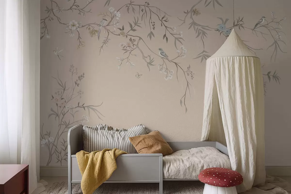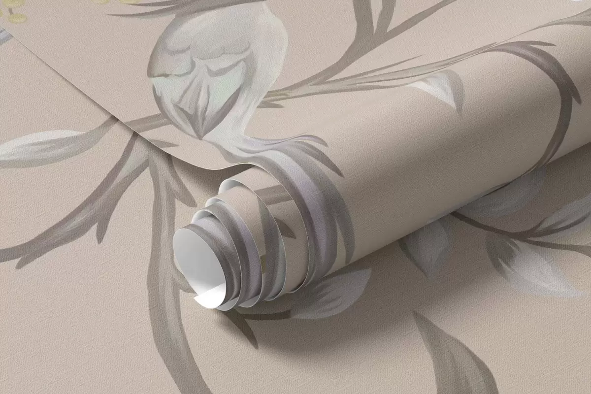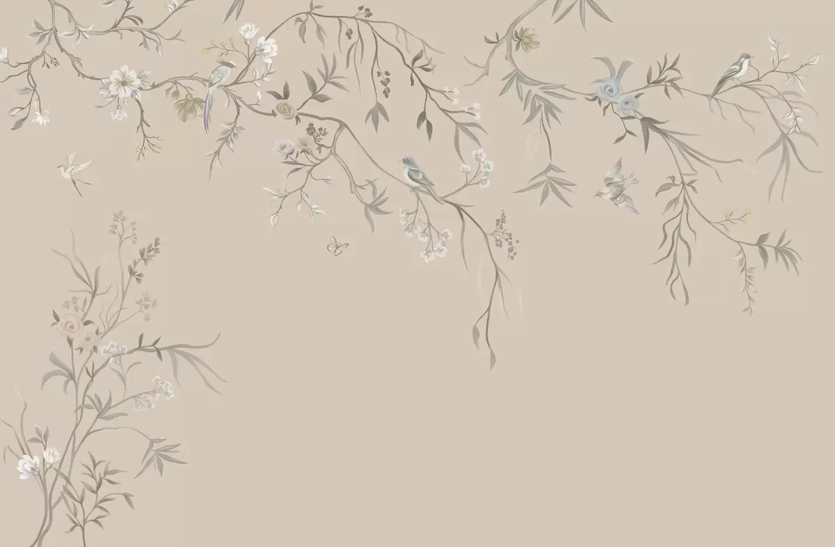 Fototapet Ramuri florale cu păsări pe fundal bej cald Nr. w05127v1