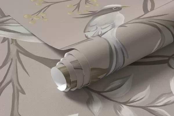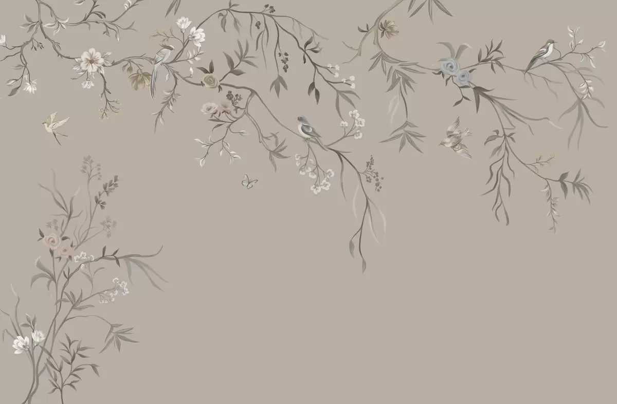 Fototapet Ornament floral cu păsări pe fundal neutru Nr. w05127v3