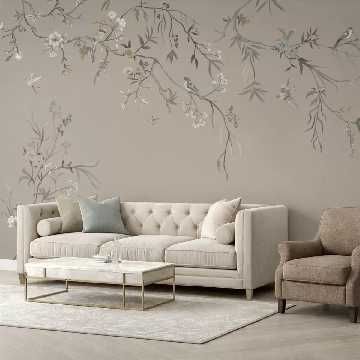 Fototapet Ornament floral cu păsări pe fundal neutru Nr. w05127v3