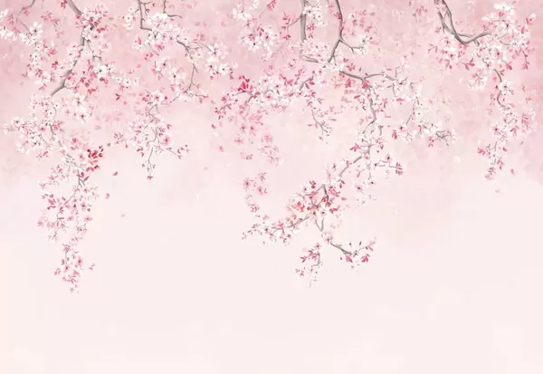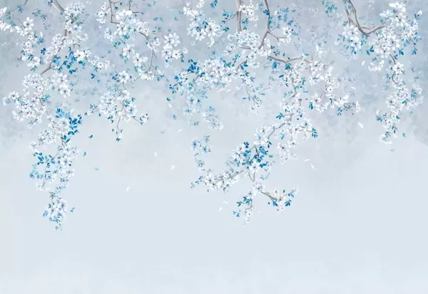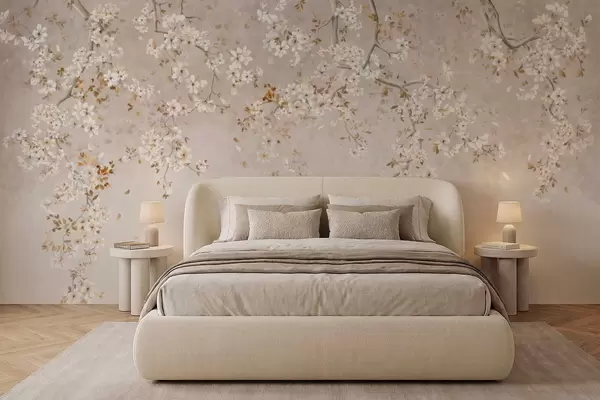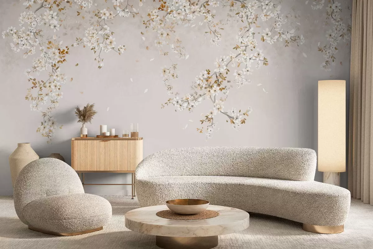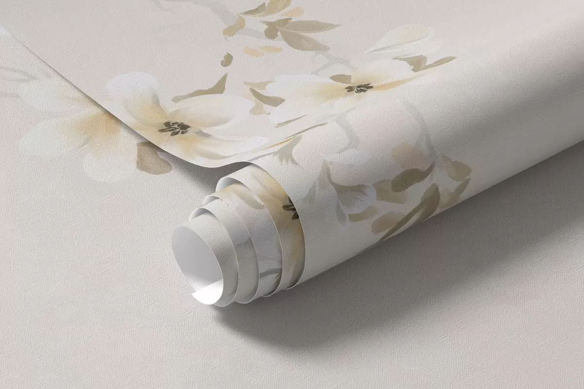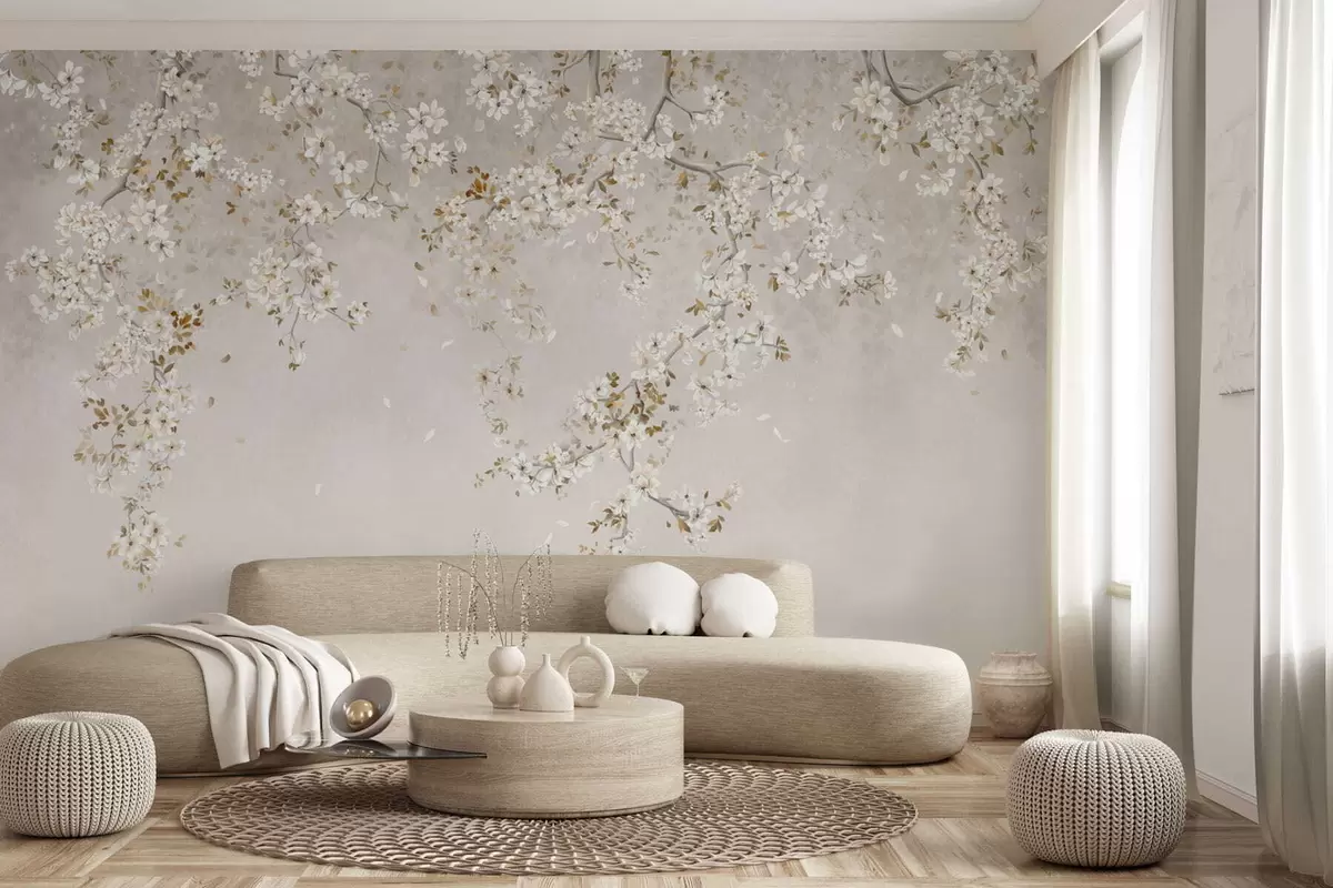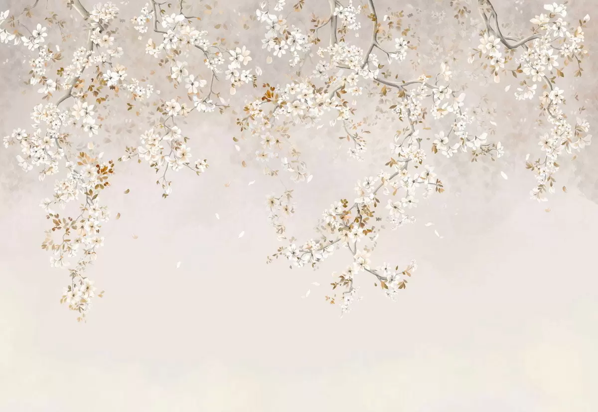 Fototapet Ramuri cu flori albe pe un fundal bej deschis Nr. w05129