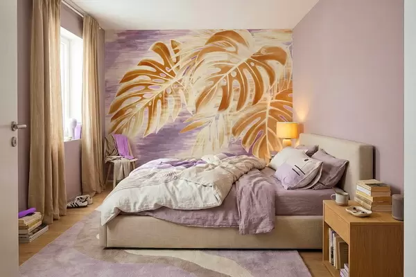 Fototapet Frunze în tonuri calde de portocaliu pe fond violet Nr. w05130v2