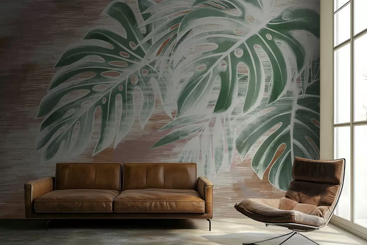 Fototapet Frunze verzi pe un fundal abstract cu textură caldă Nr. w05130v3