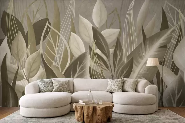 Fototapet Frunze abstracte în nuanțe de bej și verde Nr. w05148