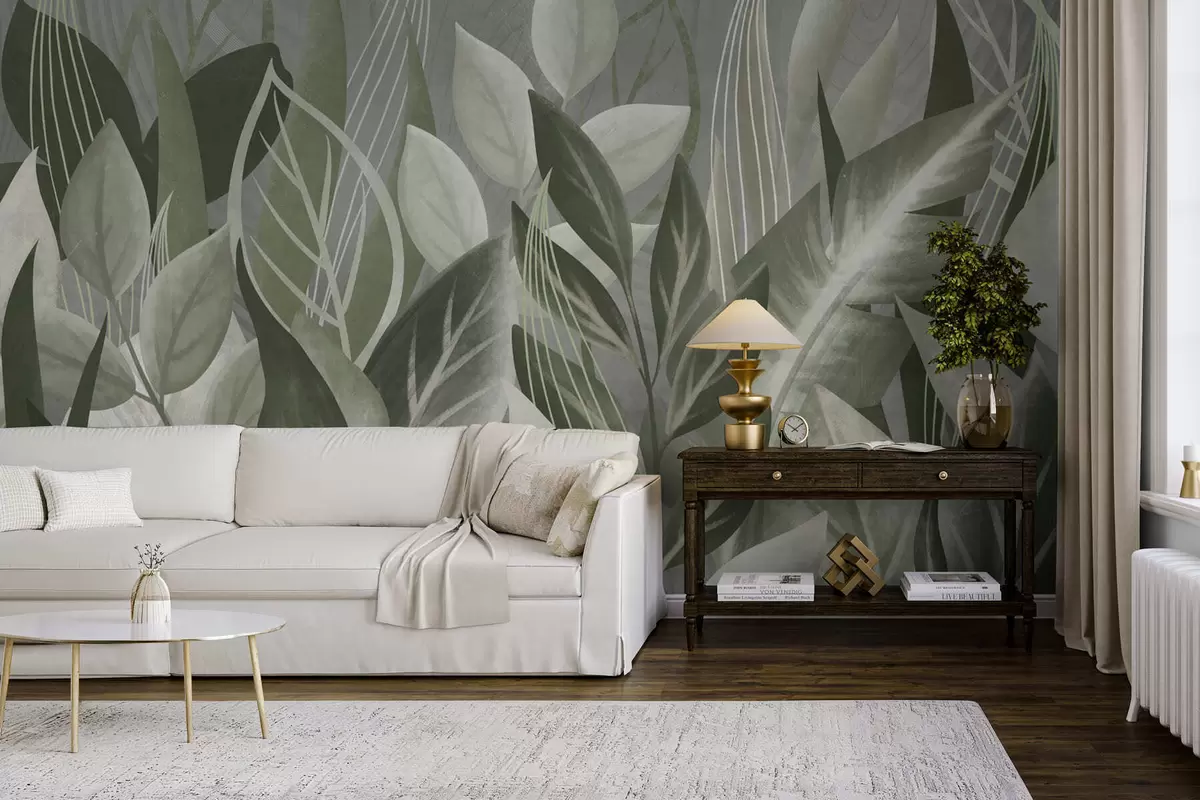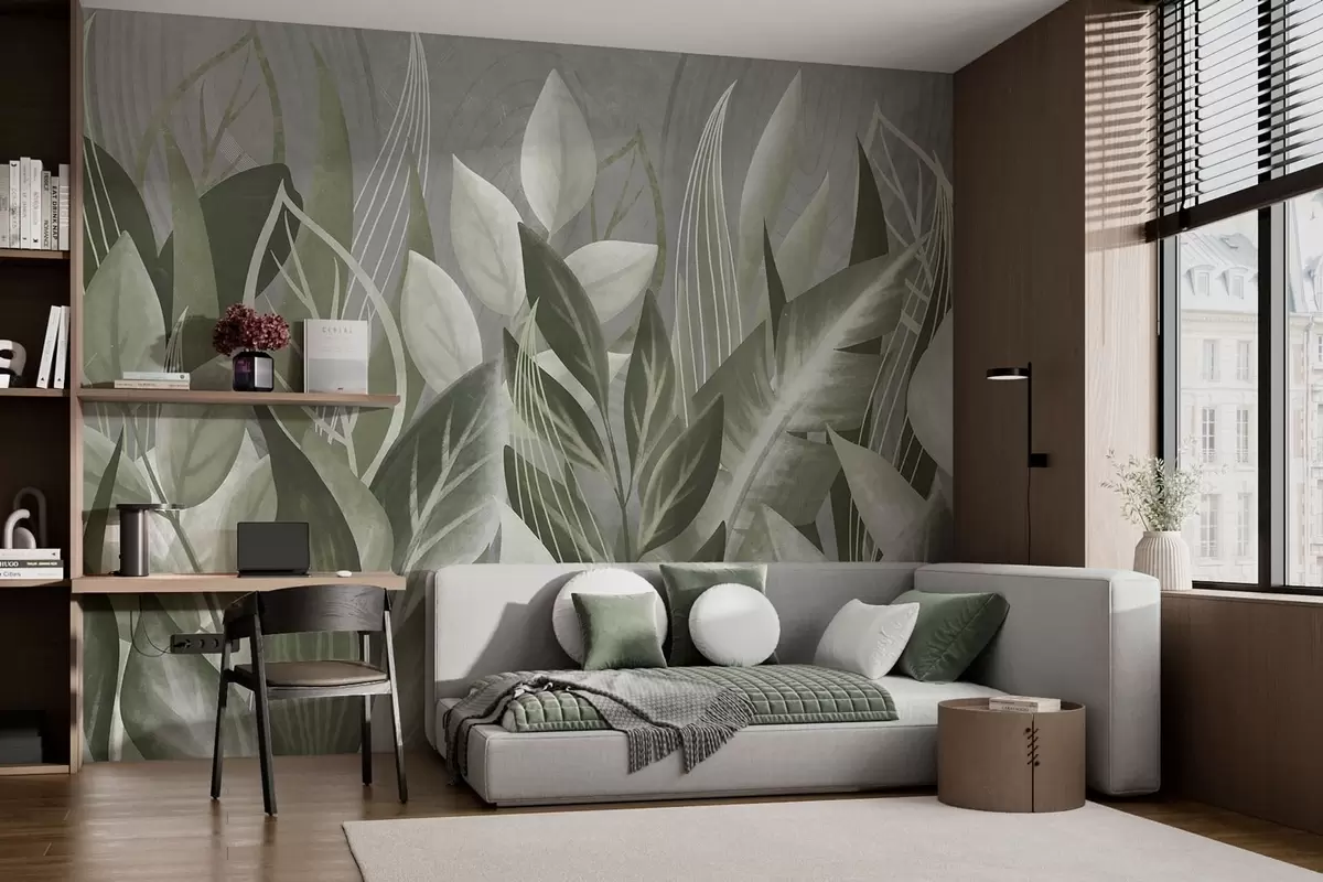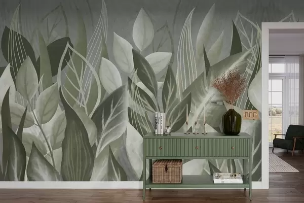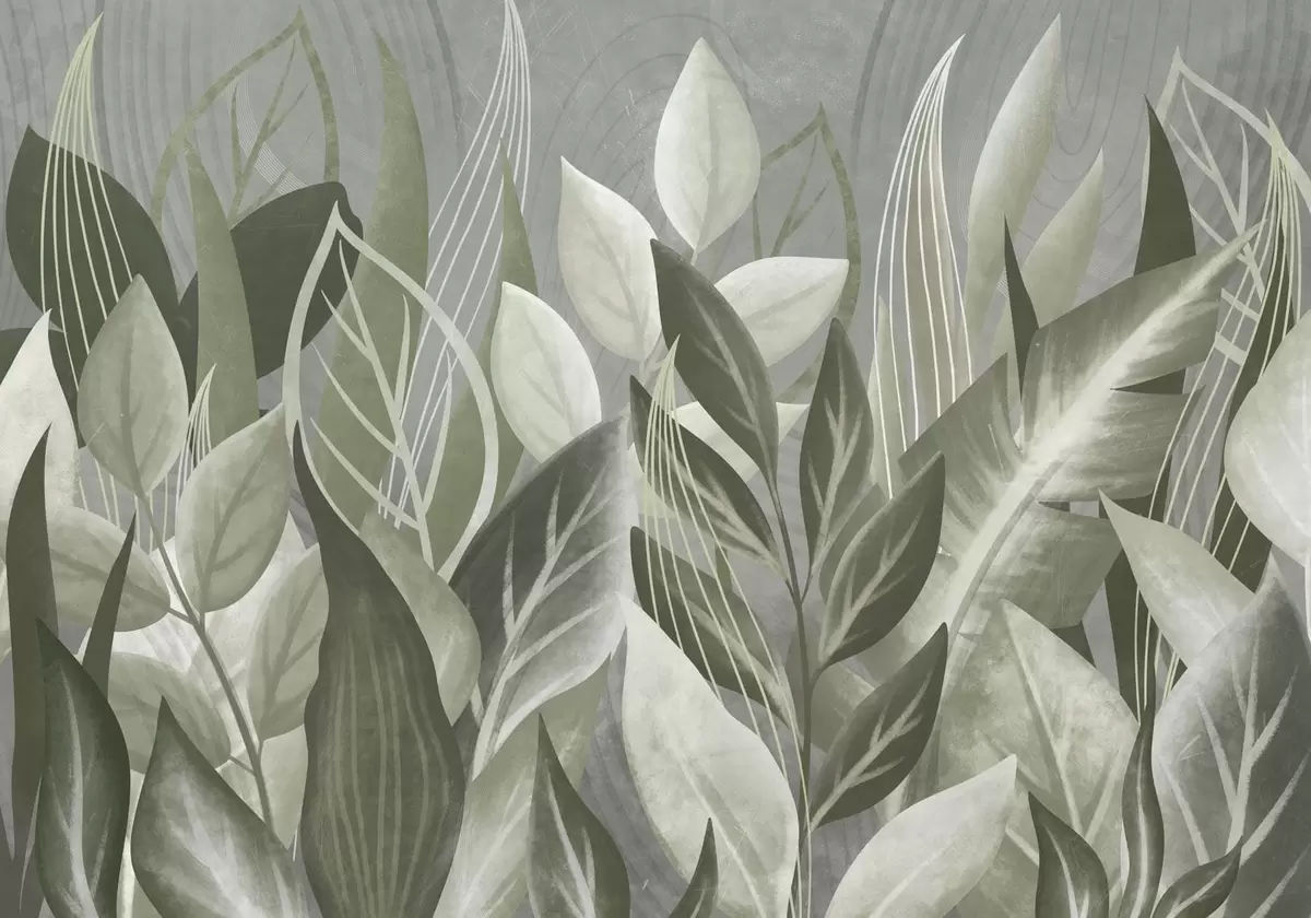 Fototapet Frunze abstracte în nuanțe de gri-verde Nr. w05148v1