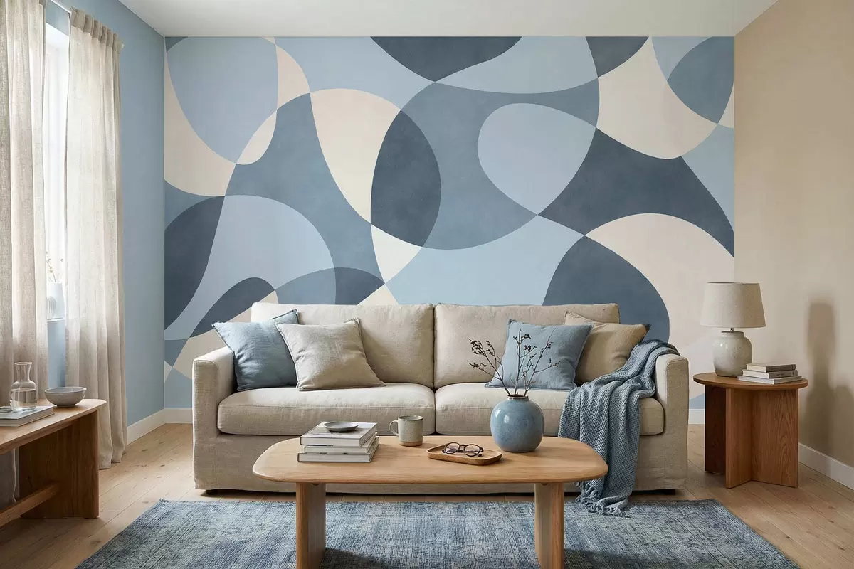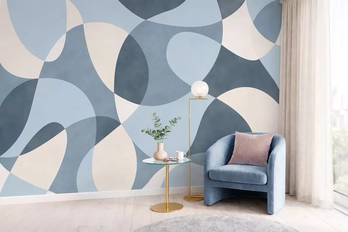 Fototapet Model abstract cu forme rotunjite în nuanțe de albastru Nr. w05149v2