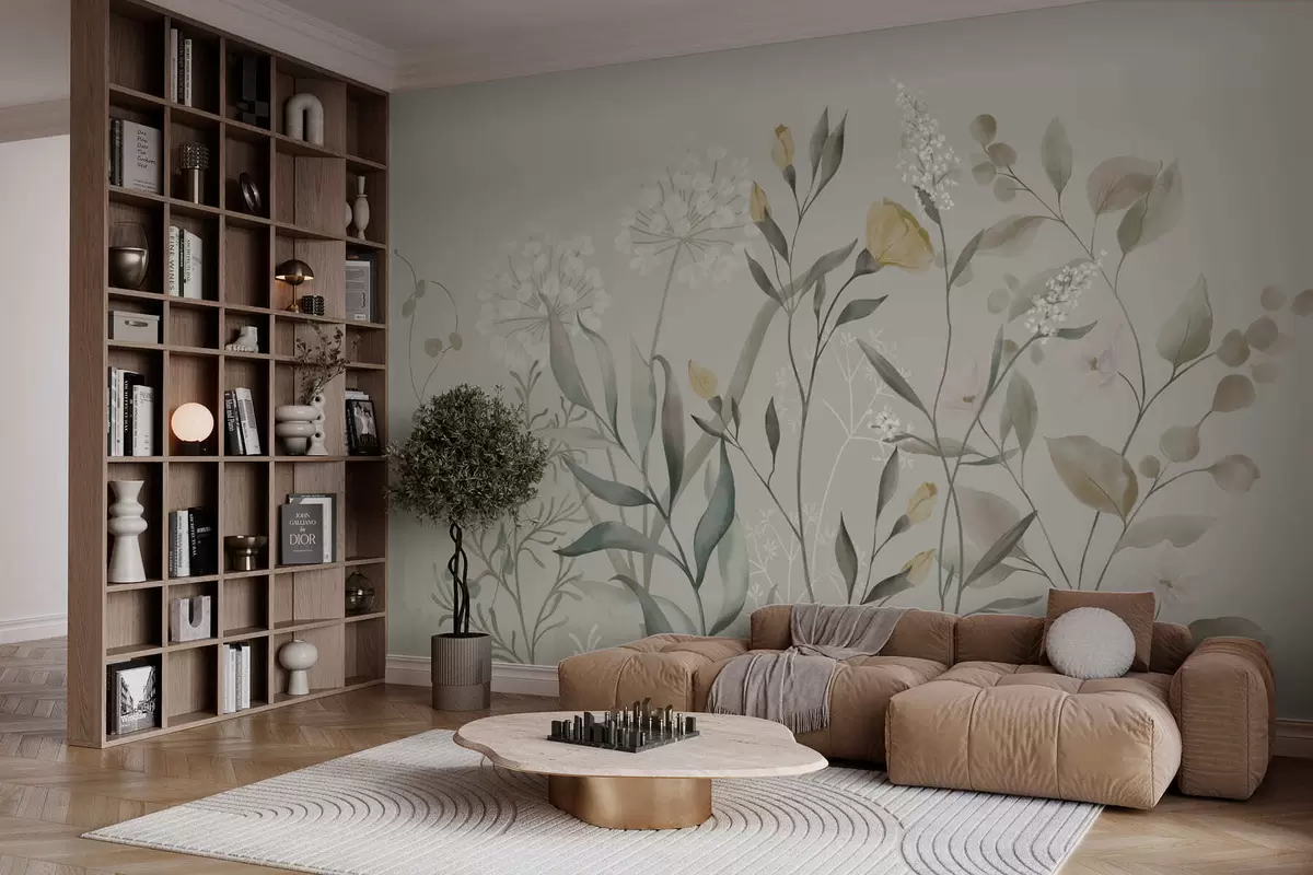 Fototapet Plante cu accente galbene pe un fundal deschis Nr. w05154v1