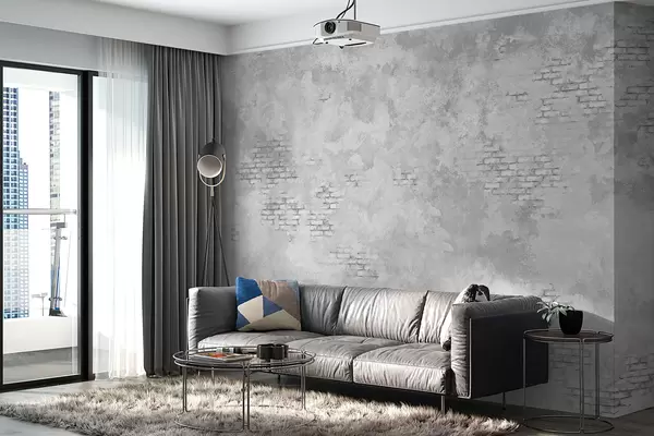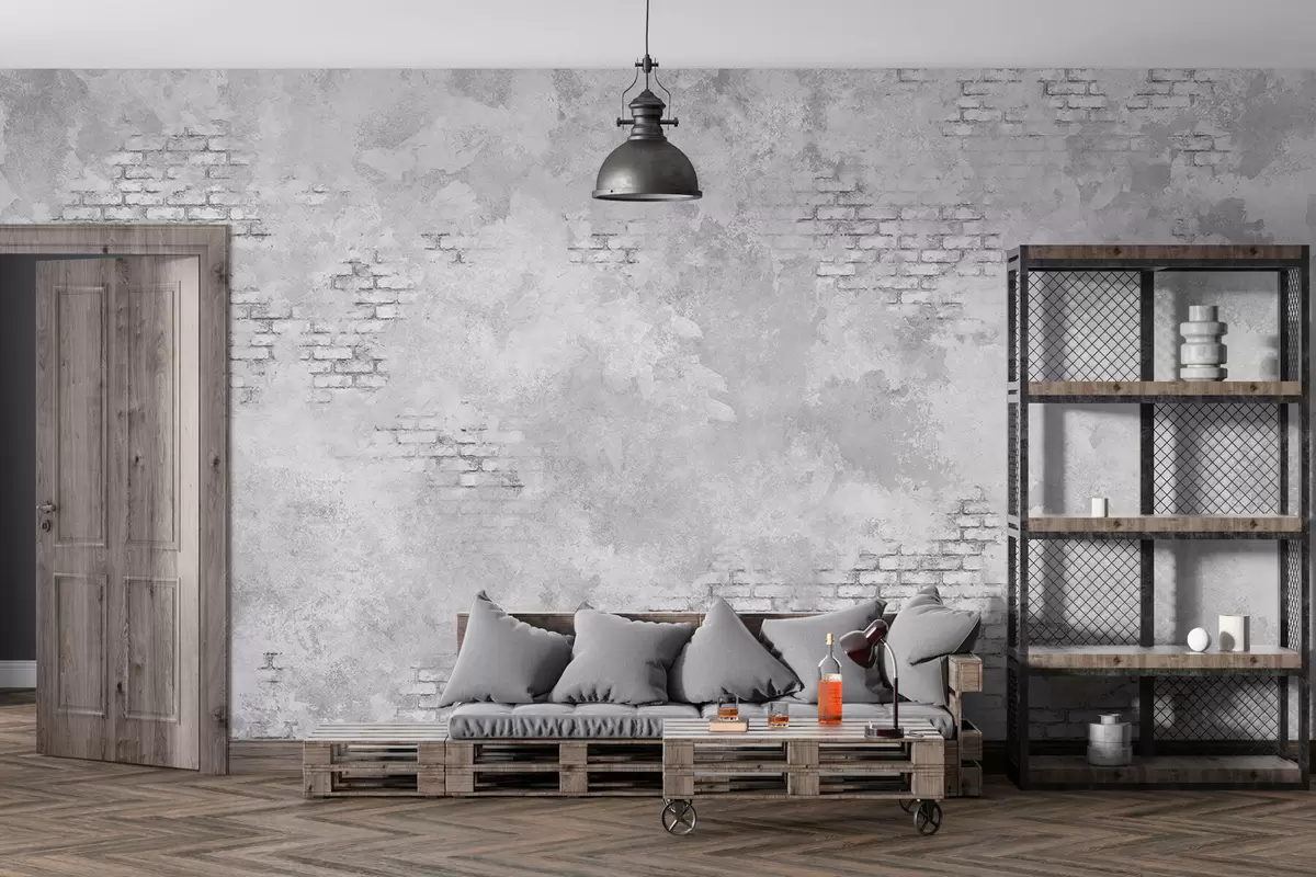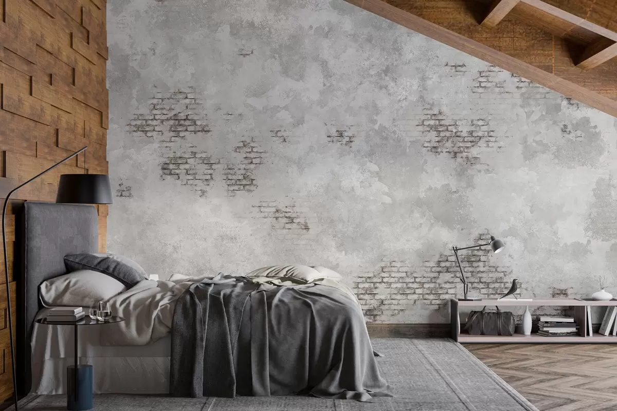 Fototapet Tencuială gri în stil grunge, cu porțiuni de cărămidă aparentă Nr. w05161v2