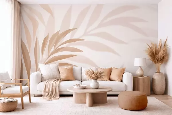 Fototapet frunze mari și curbate de palmier în nuanțe de bej și maro Nr. w05211