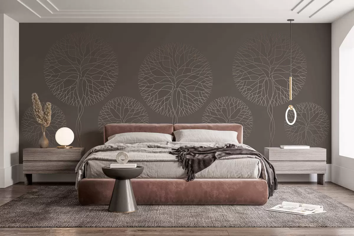 Fototapet Copaci liniari fantastici cu coroane luxuriante în nuanțe elegante de mocha Nr. w05213v1
