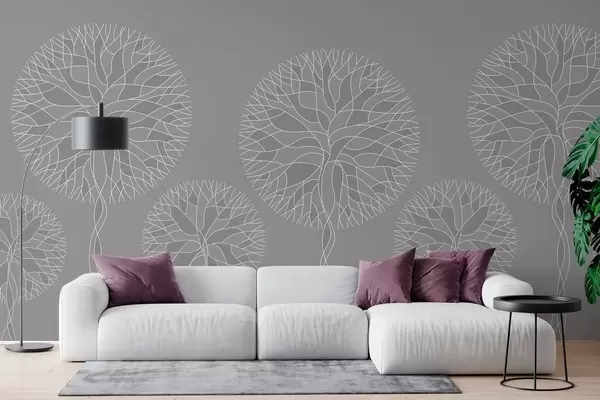 Fototapet Copaci liniari fantastici cu coroane luxuriante în nuanțe de gri mediu Nr. w05213v5