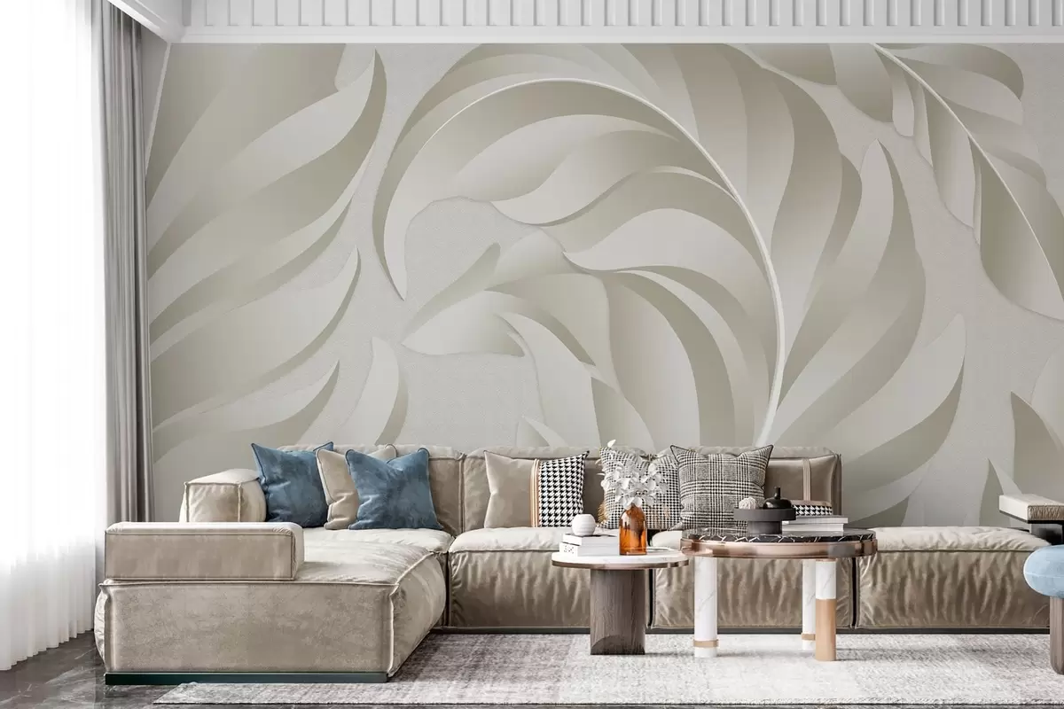 Fototapet pene mari texturate în nuanțe de bej și măslin Nr. w05231v1