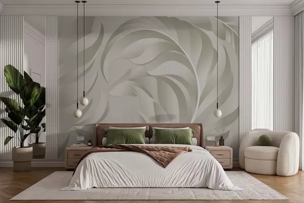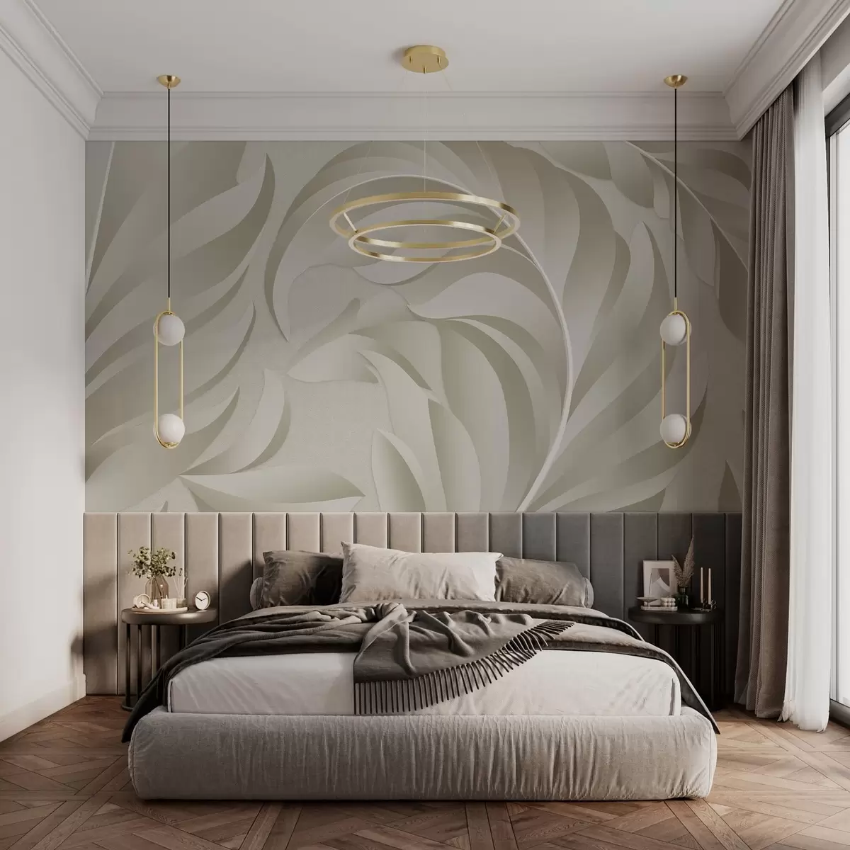 Fototapet pene mari texturate în nuanțe de bej și măslin Nr. w05231v1