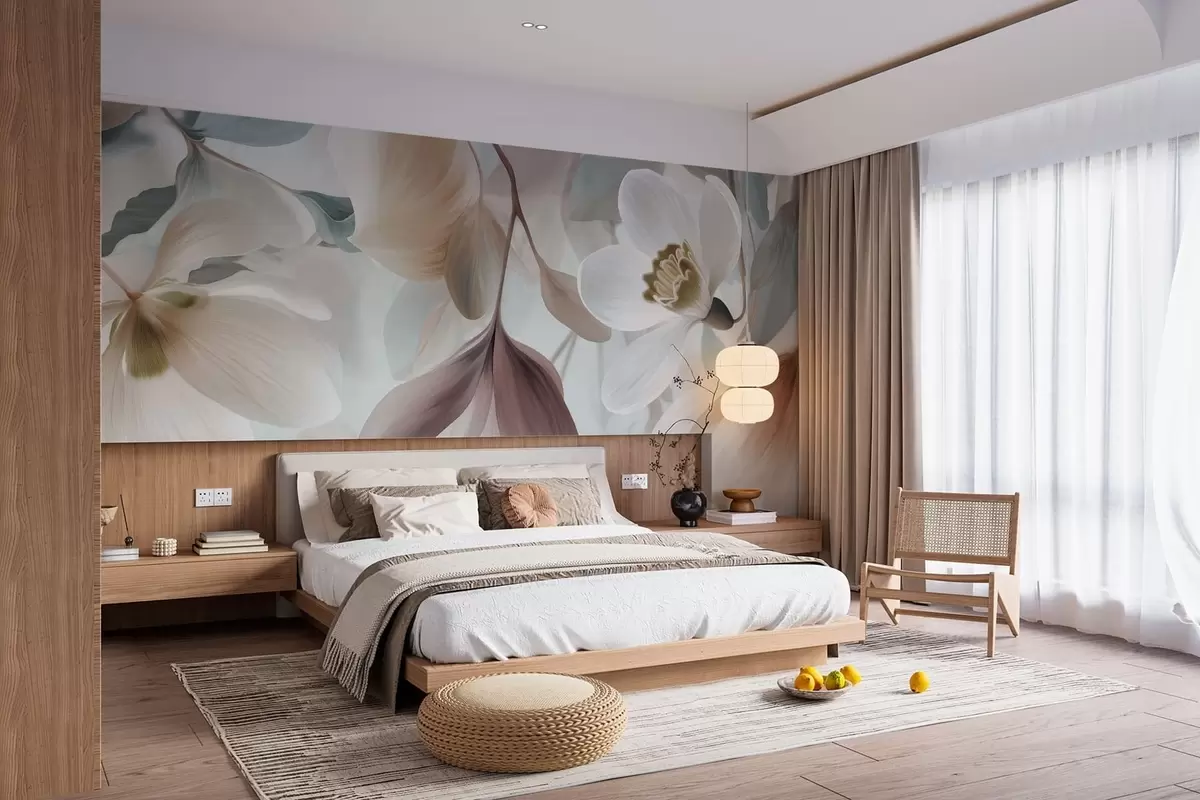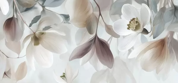 Fototapet o compoziție delicată din flori și frunze în nuanțe pastelate Nr. w05240