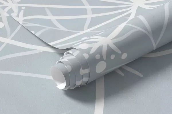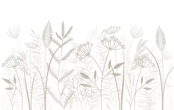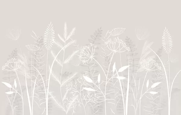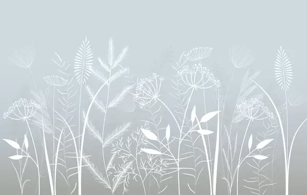 Fototapet ierburi sălbatice și flori delicate, pictate manual, pe un fundal gri-albastru Nr. w05383