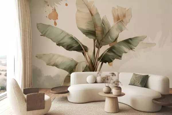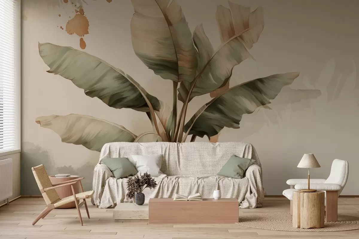 Fototapet un buchet mare și pitoresc de frunze de bananier, cu pete în stil retro Nr. w05384