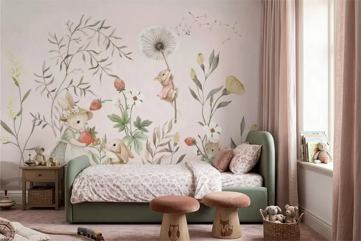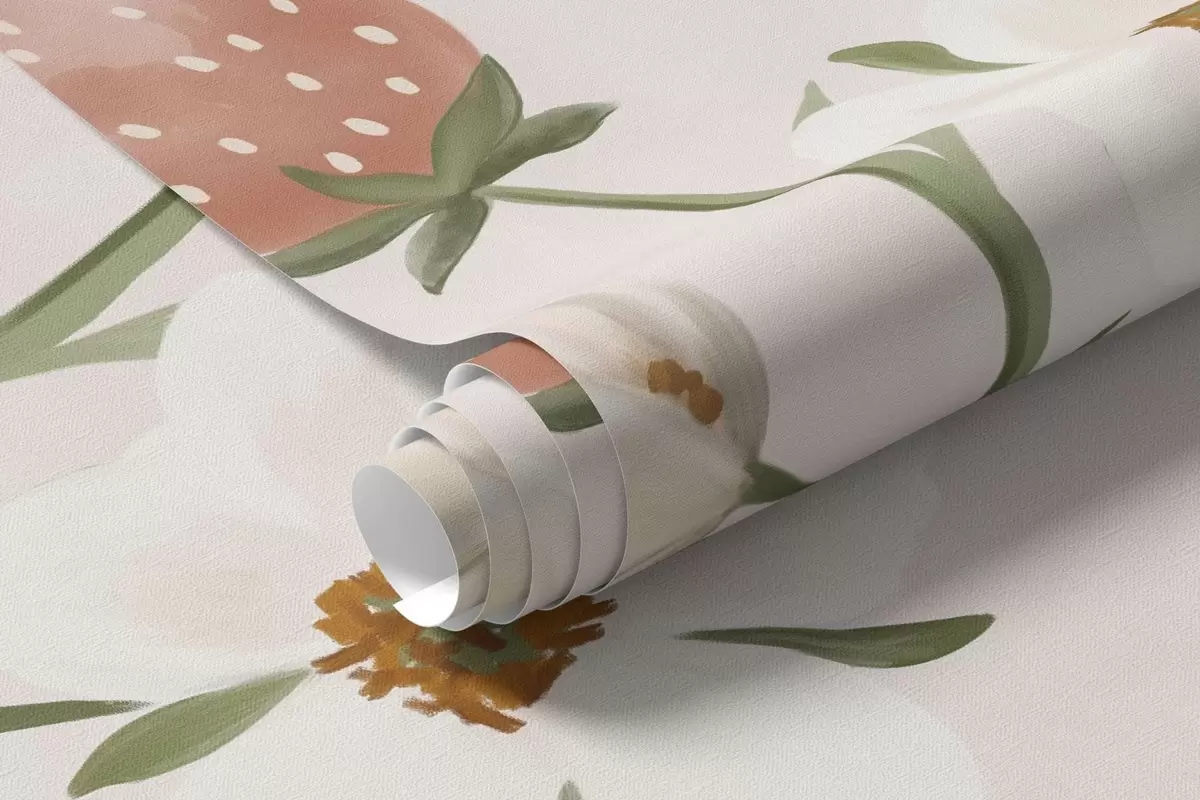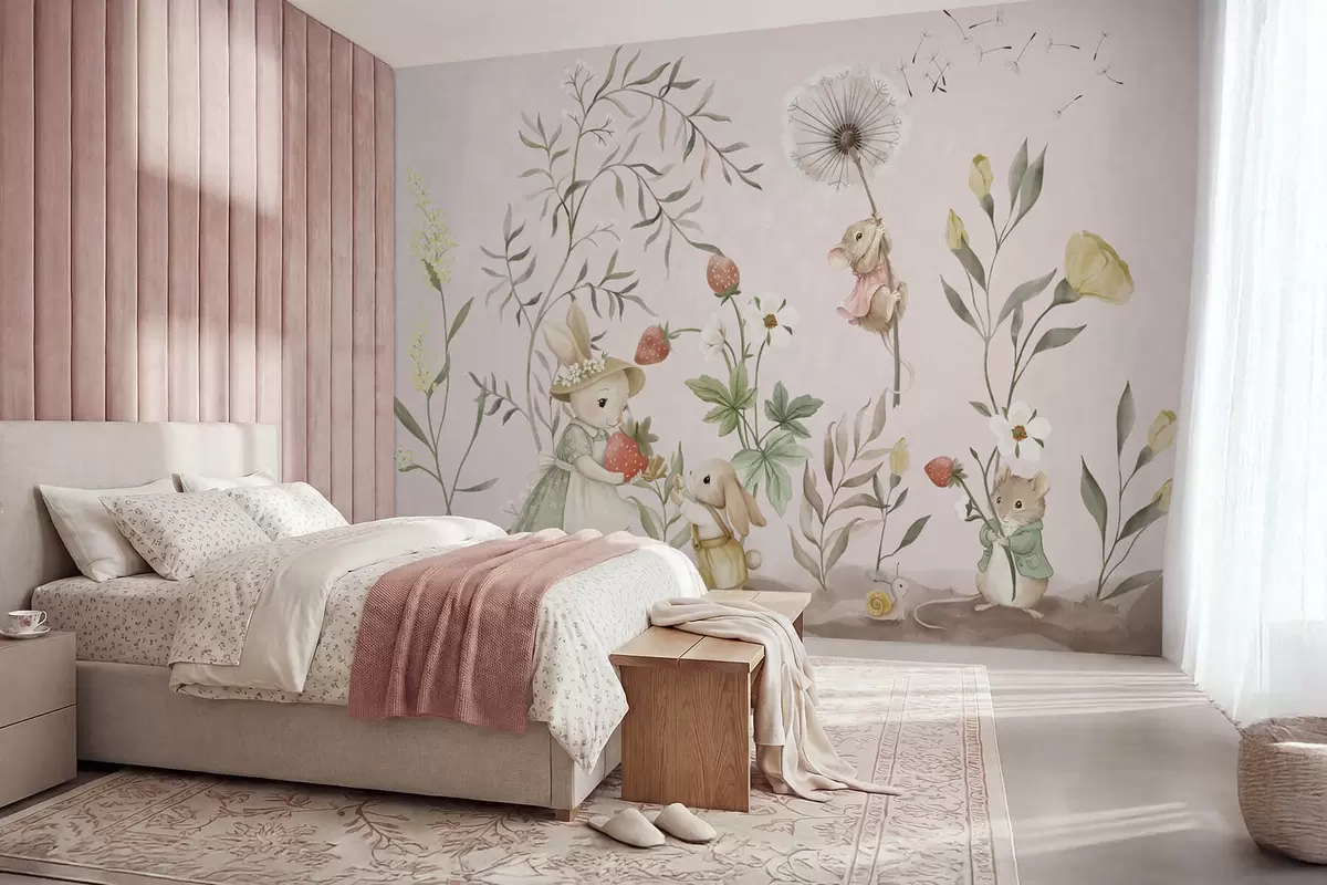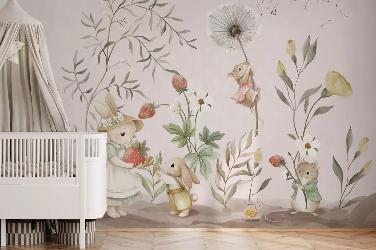 Fototapet Ilustrație cu animale și căpșuni pe un fundal roz pal Nr. w05422v1