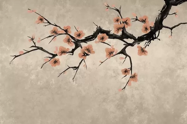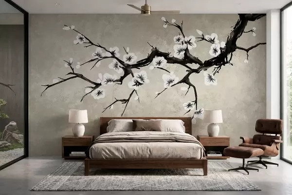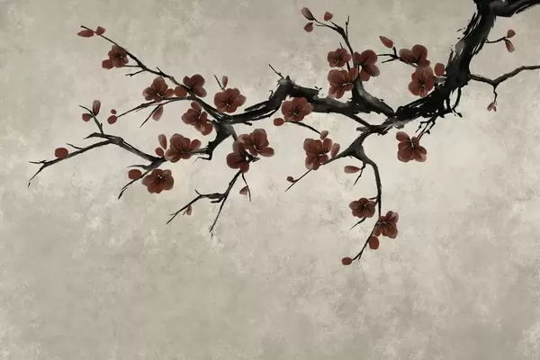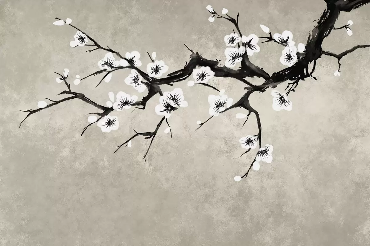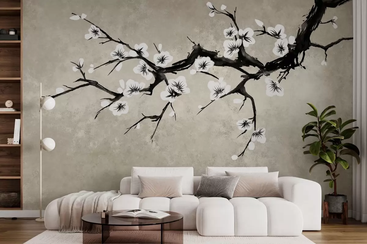 Fototapet Ramură cu flori albe, în stil minimalist Nr. w05425