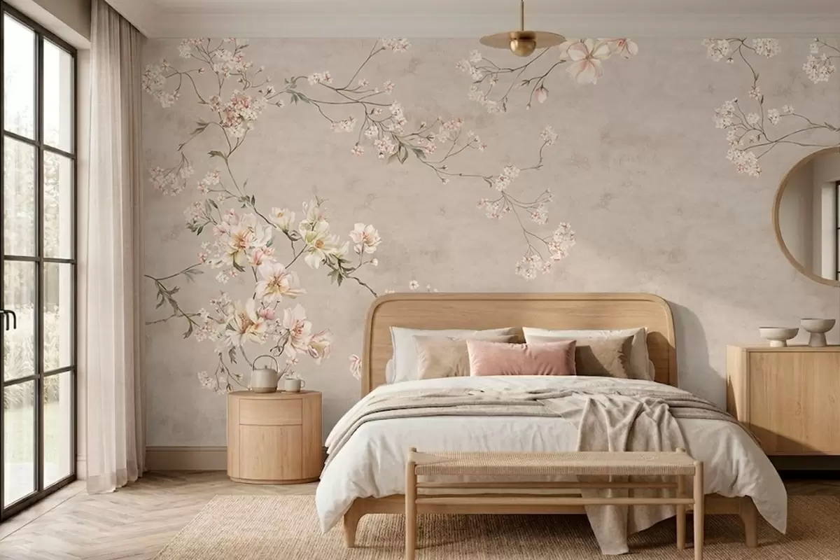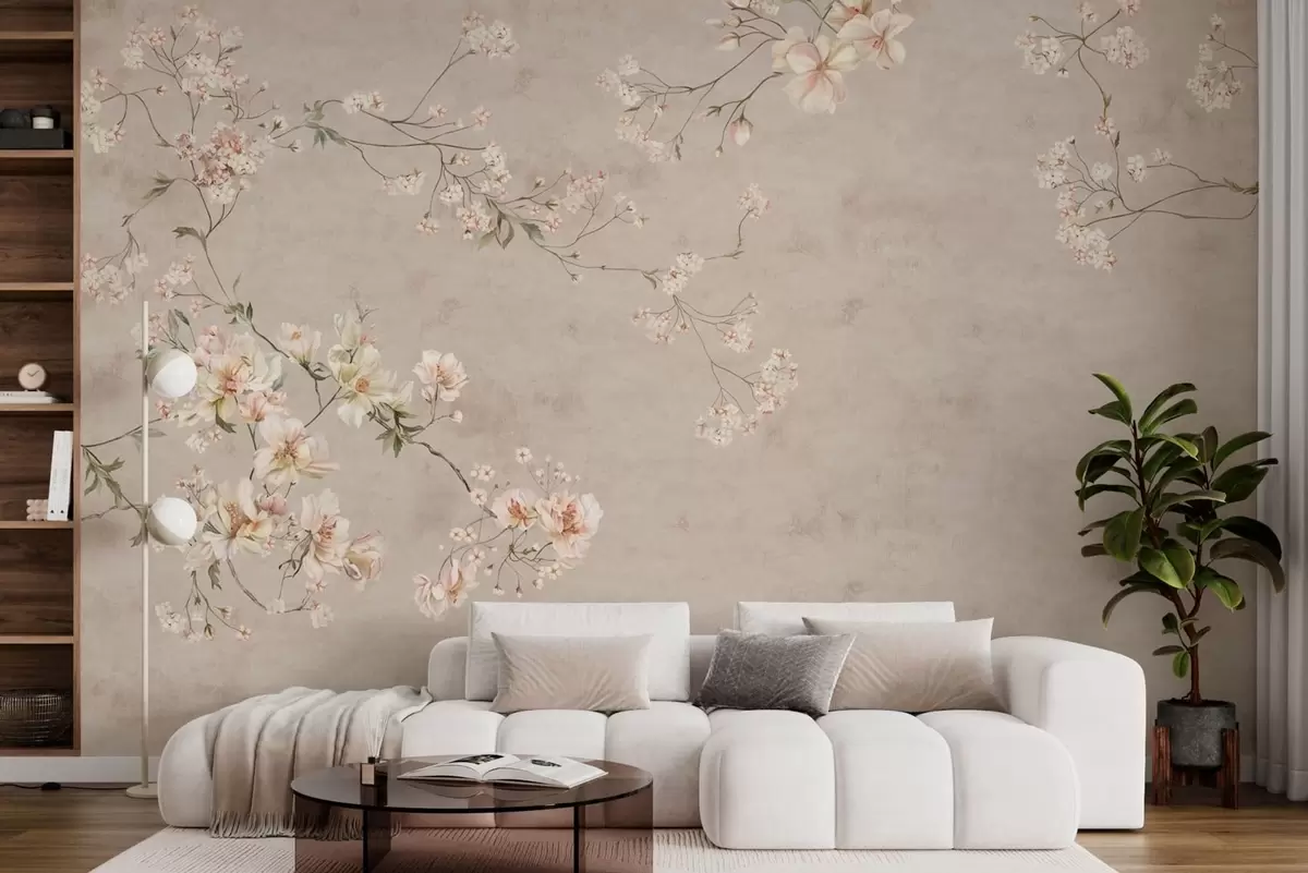 Fototapet Ramuri florale delicate în stil chinoiserie pe un fundal deschis Nr. w05427