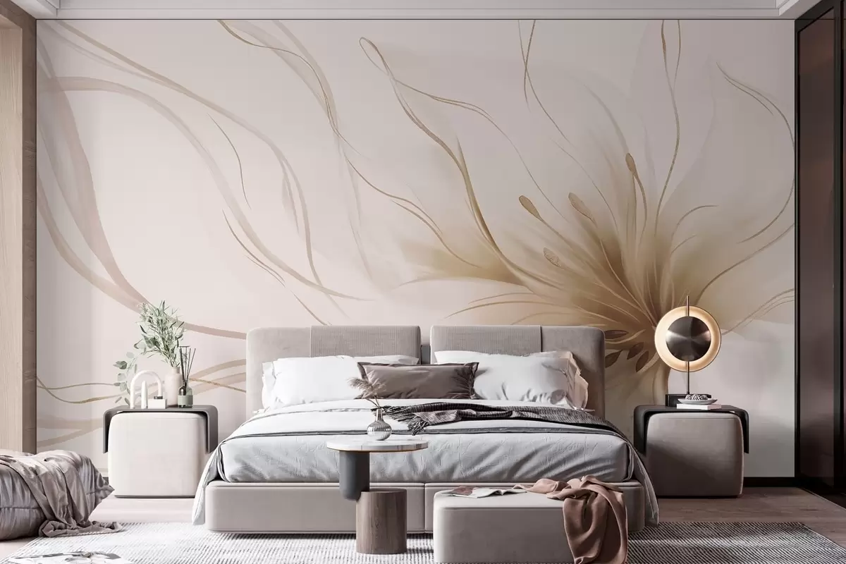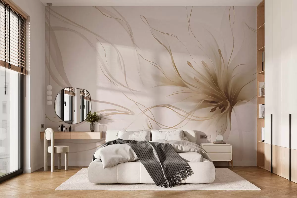 Fototapet O floare abstractă de culoare bej, cu linii fluide, în stilul Fluid Art Nr. w05428v2