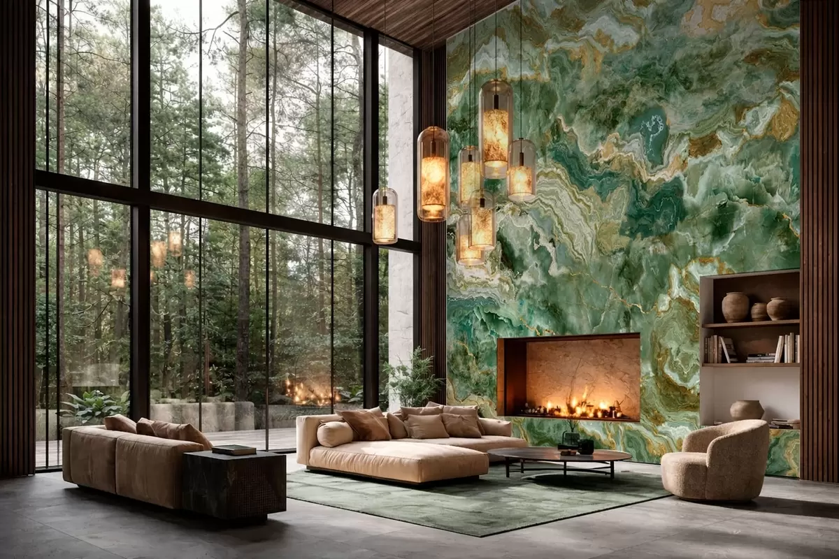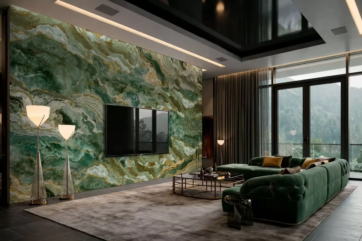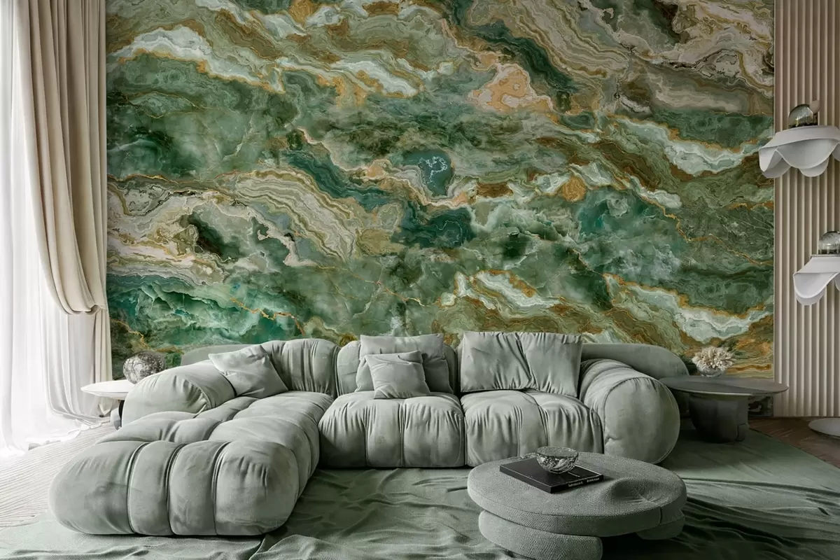 Fototapet Textură de onix verde cu venaturi curgătoare, dispuse în straturi Nr. w05429