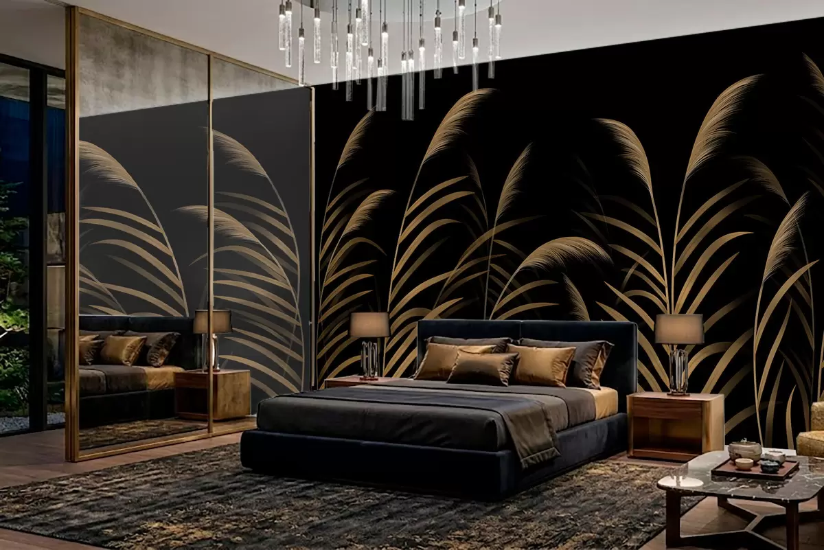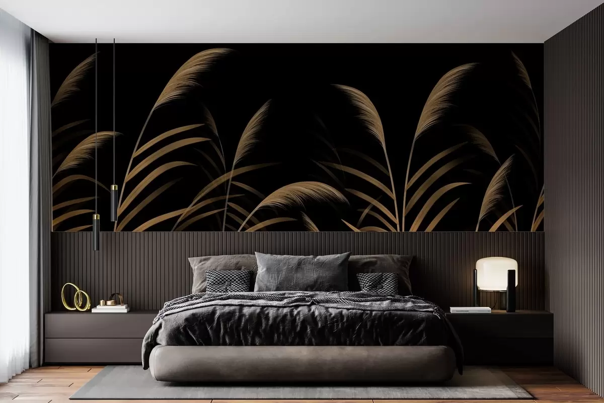 Fototapet Ierburi minimaliste pe fundal întunecat, cu contrast ridicat Nr. w05432v3