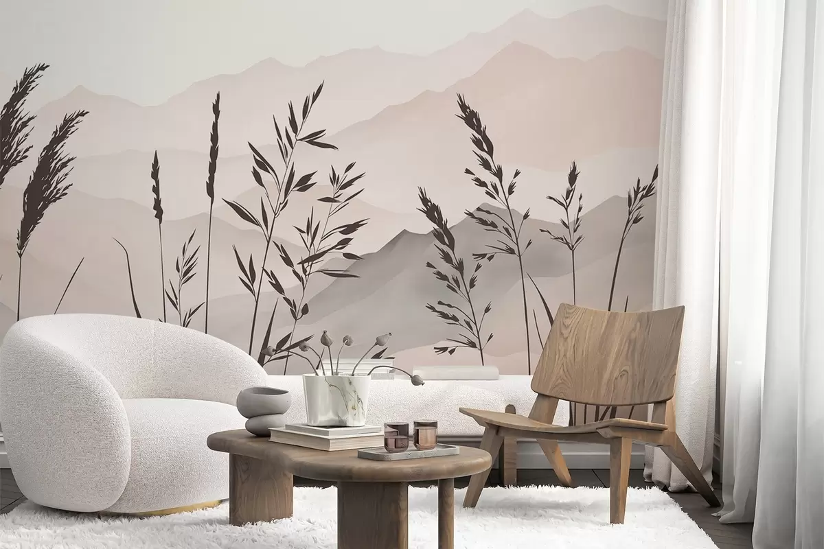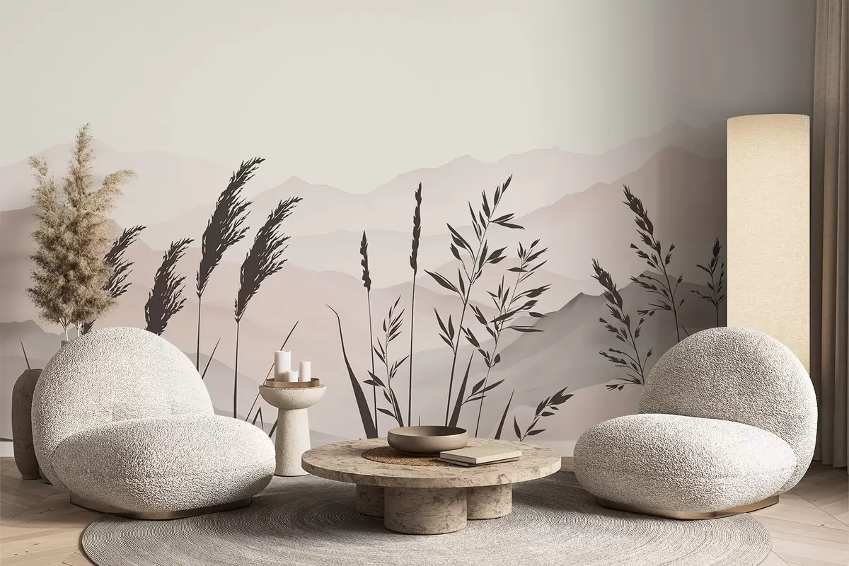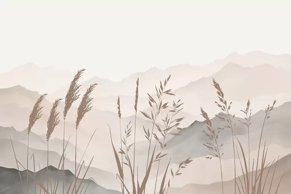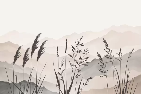 Fototapet Siluete de iarbă pe fundalul munților Nr. w05501