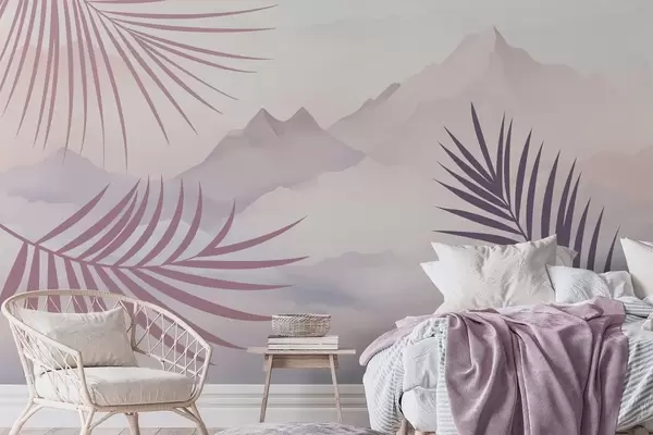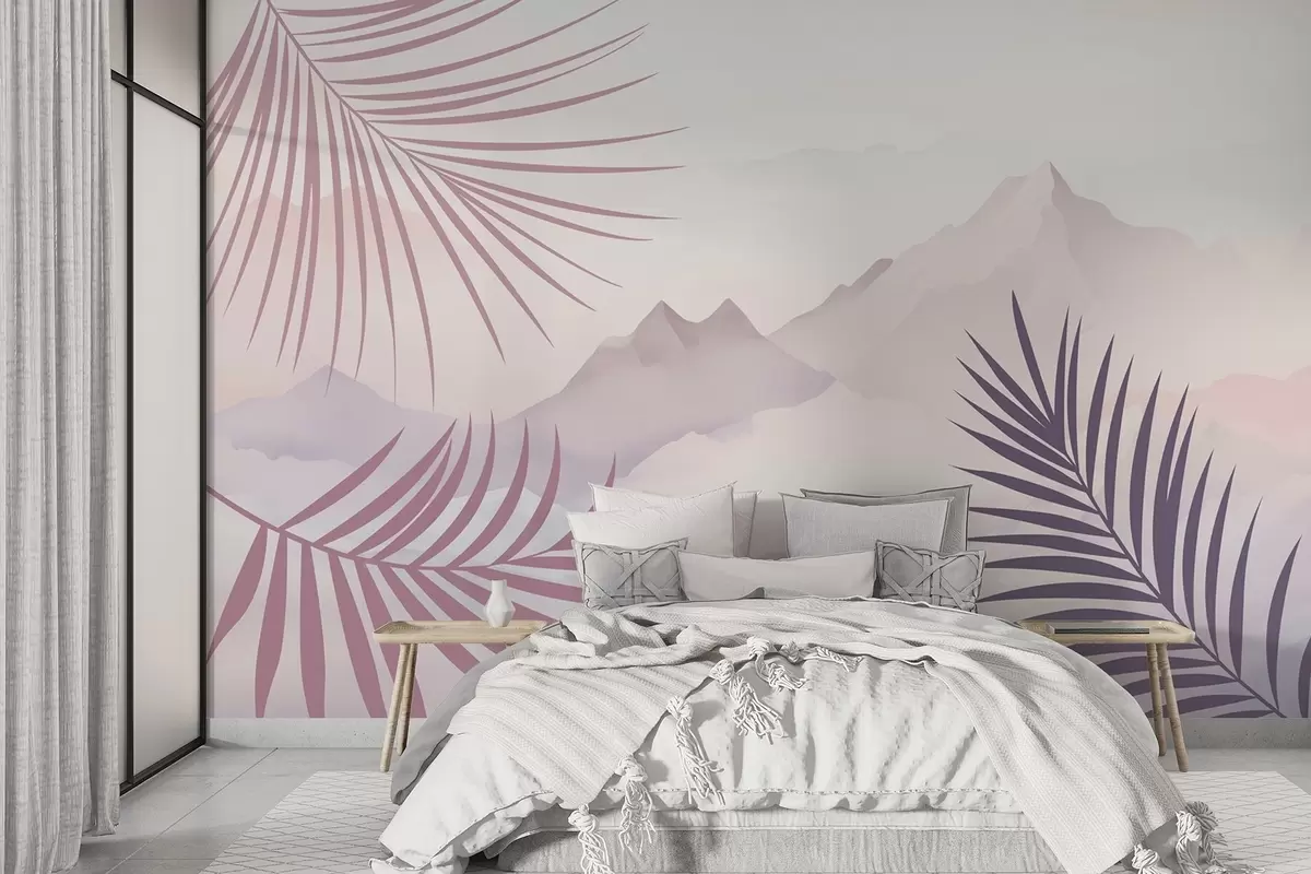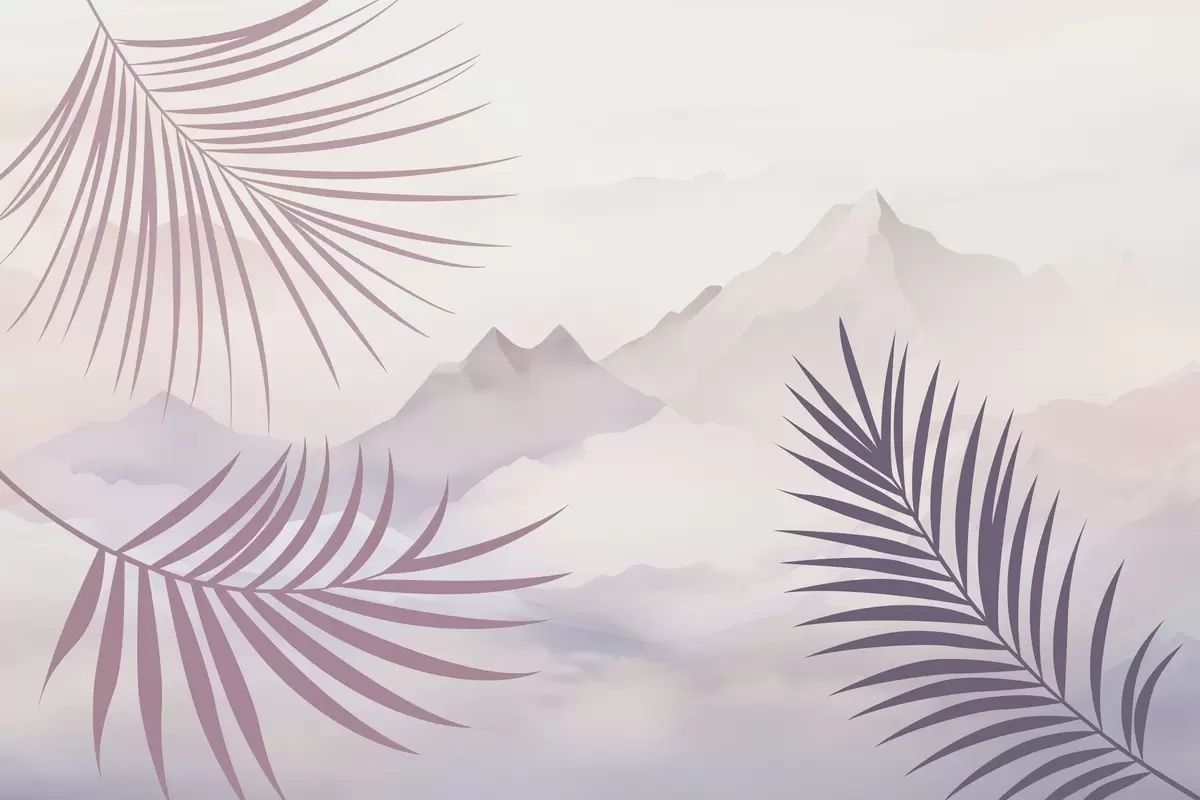 Fototapet Frunze de palmier pe fundalul munților Nr. w05548v1