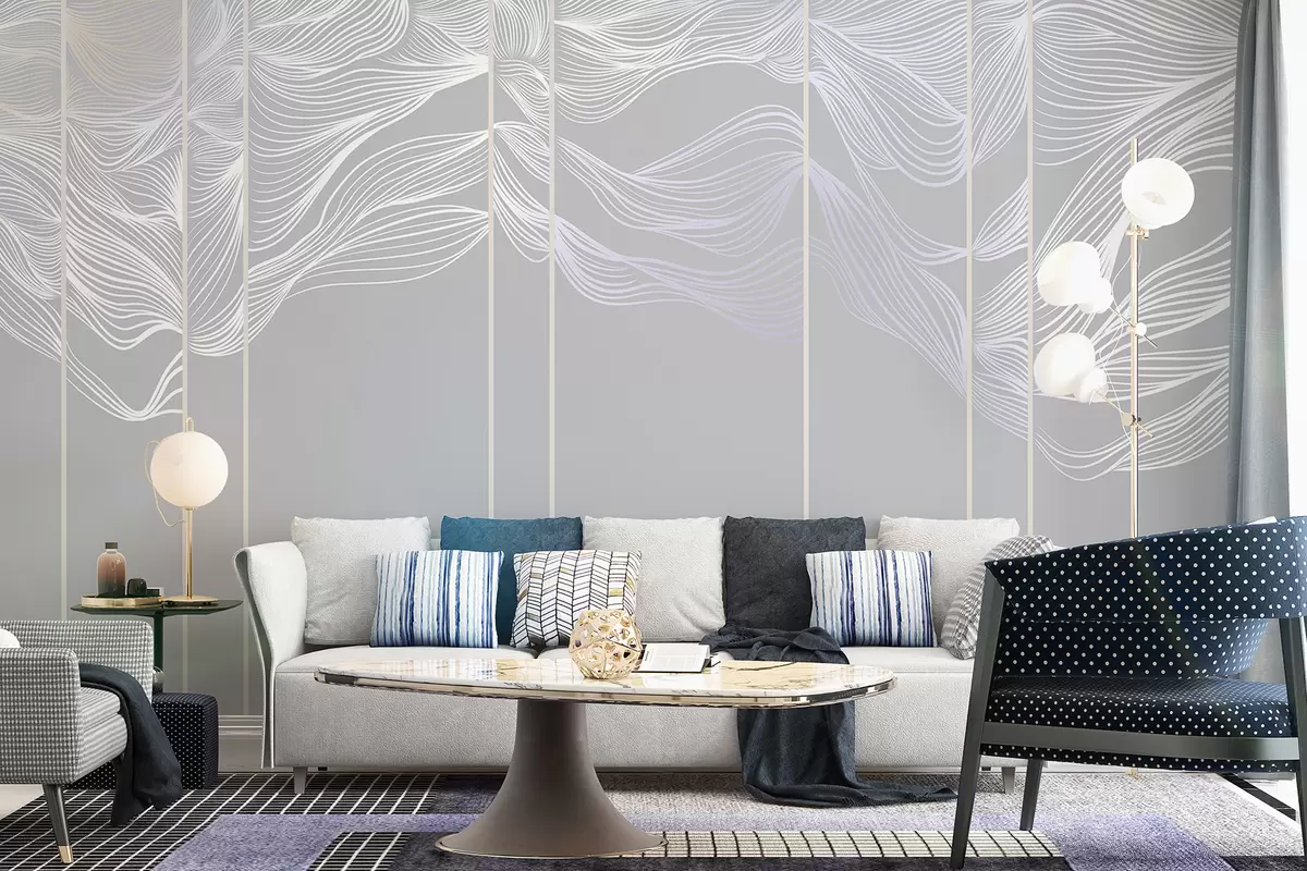 Fototapet Curge alb linii abstracte valuri pe un fundal gri deschis Nr. w08263v1