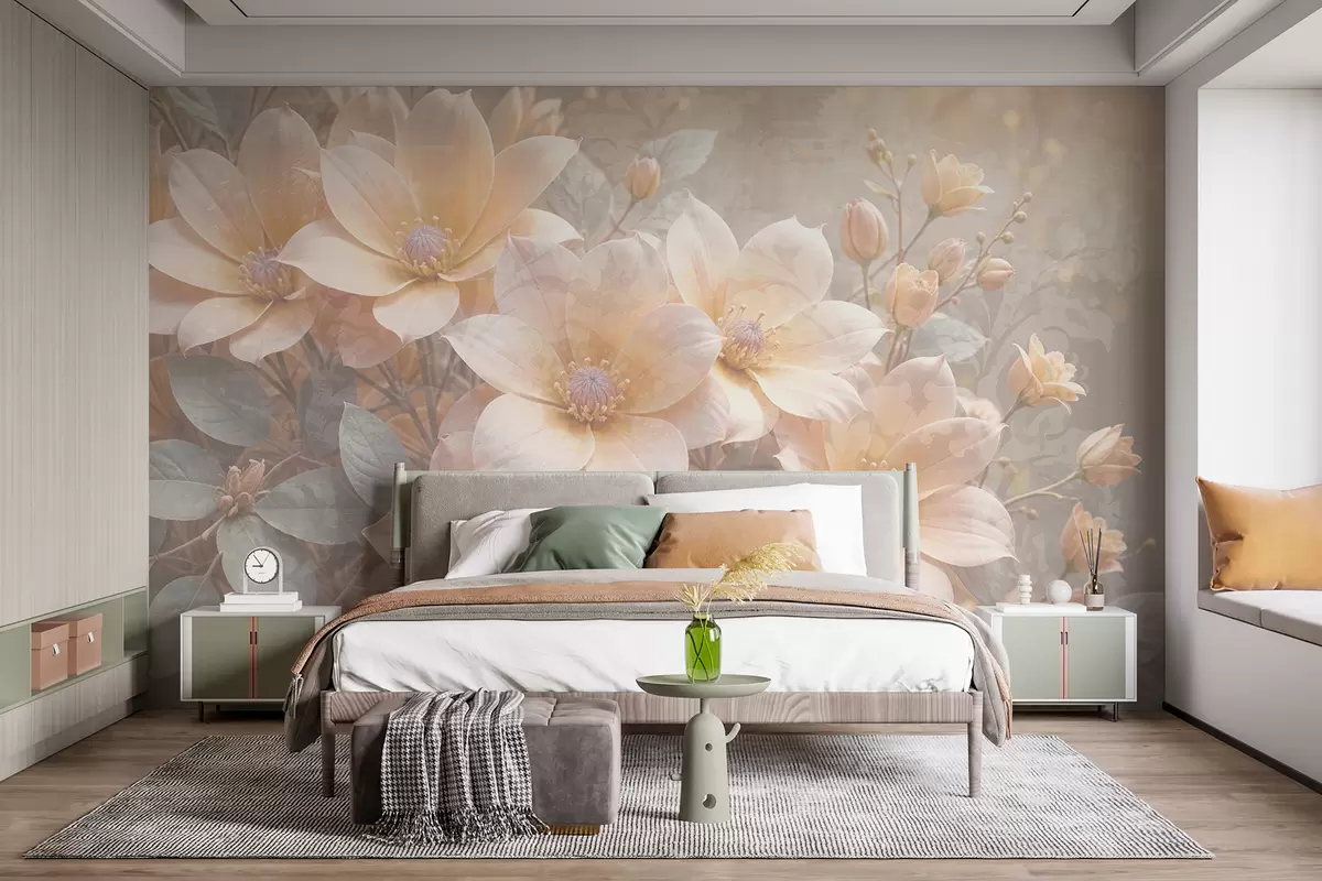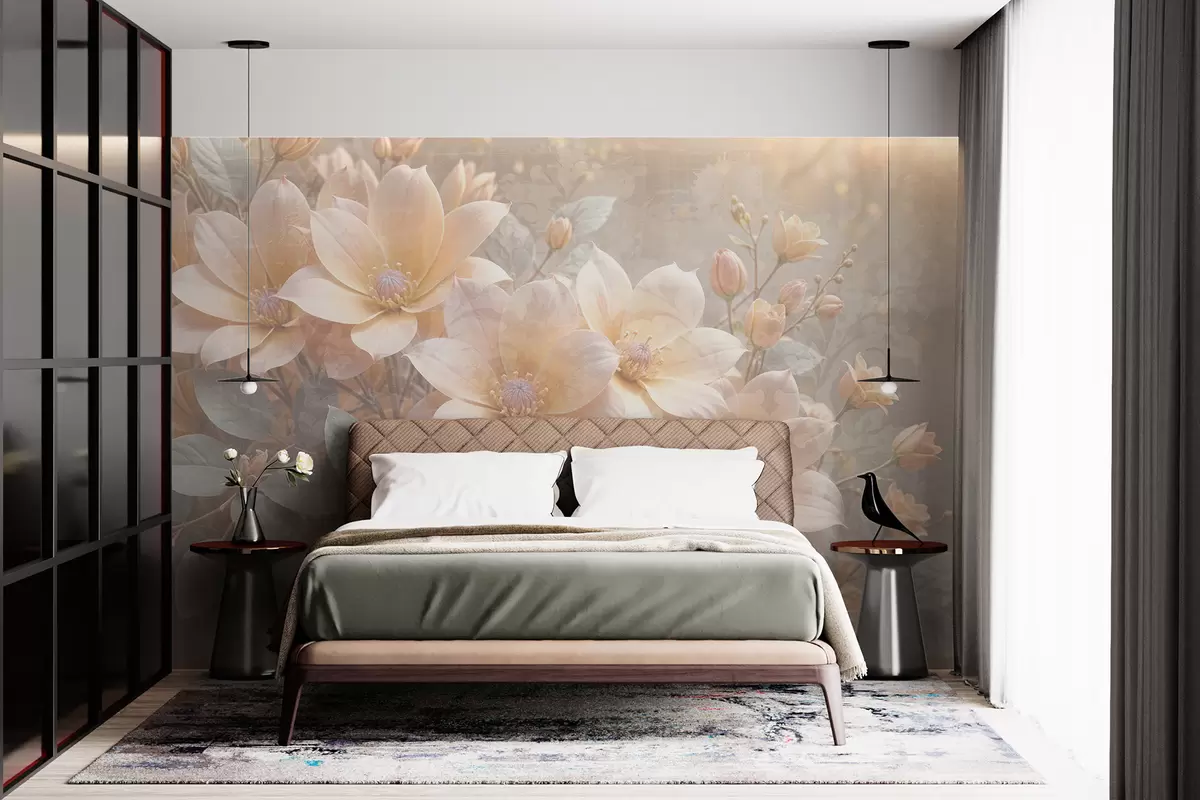 Fototapet Flori de culori pastelate cu petale delicate pe un fundal cu textură neclară, creând o atmosferă senină Nr. w08273