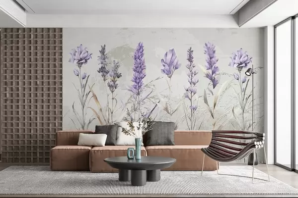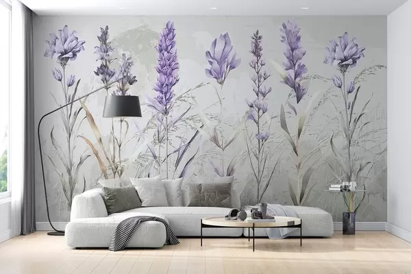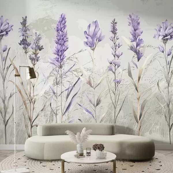 Fototapet Un câmp de flori violet acuarelă lavanda cu moale, blurred texturat fundal bej Nr. w08346
