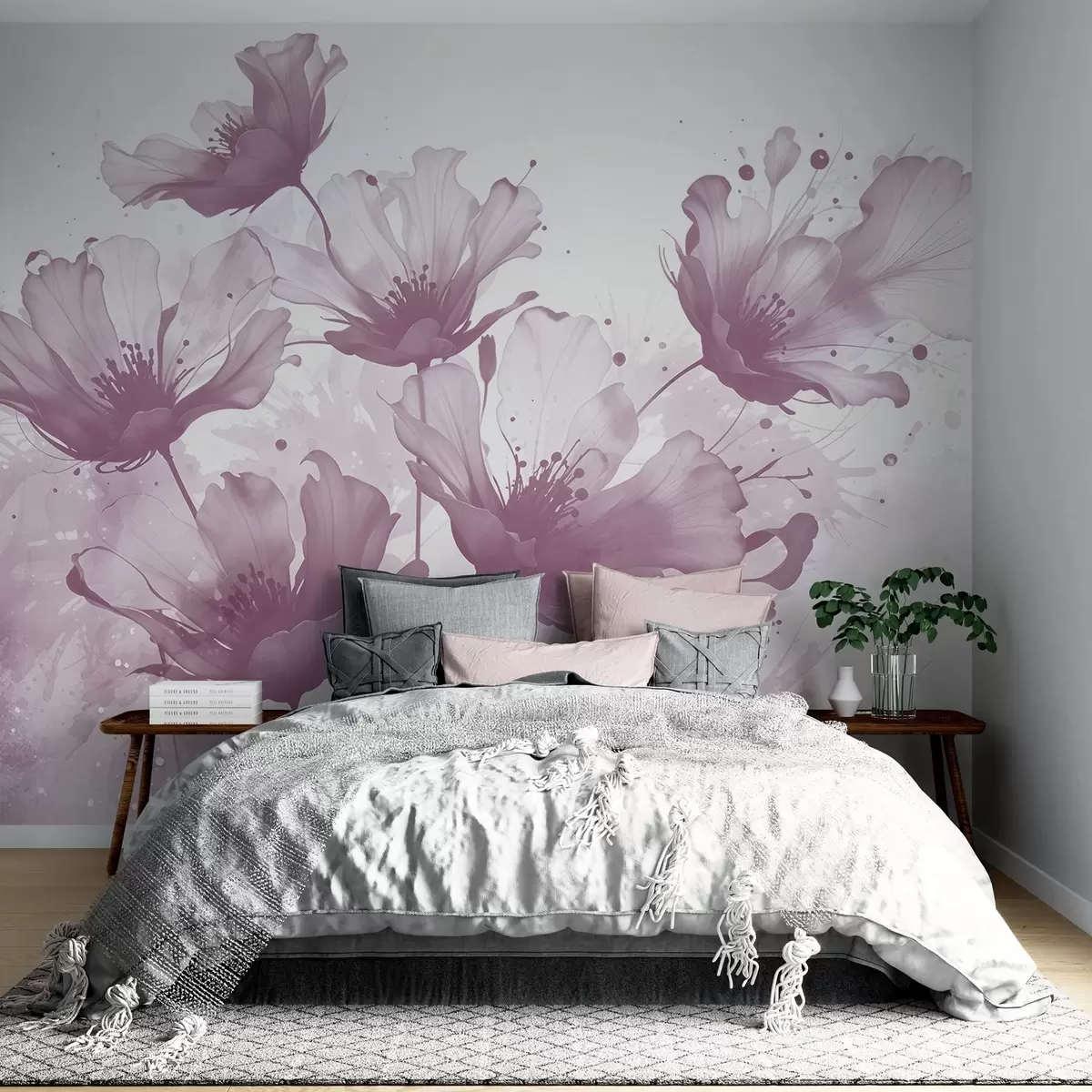 Fototapet Delicate flori roz cu petale moi, neclare și stropi de acuarelă pe un fundal deschis Nr. w08376v2
