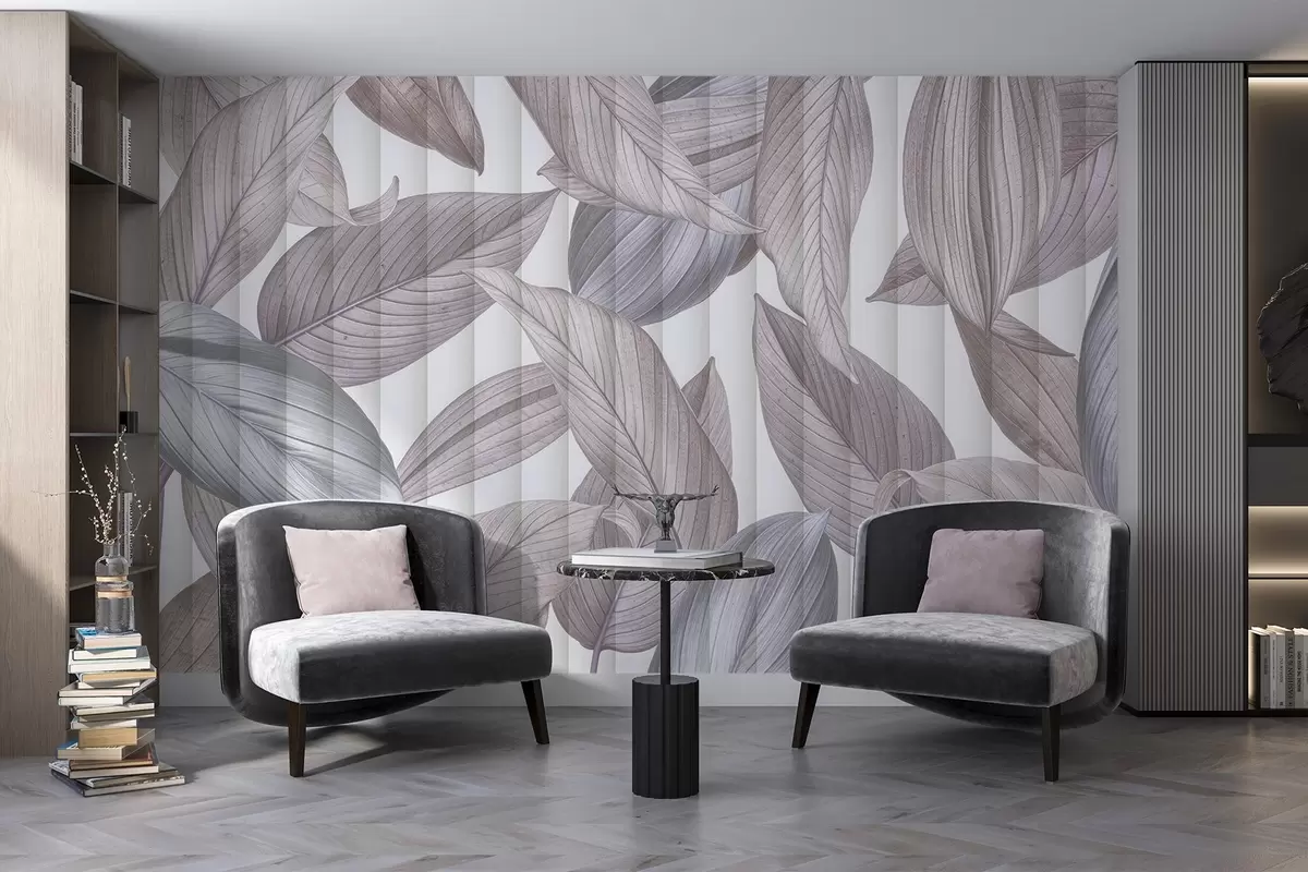 Fototapet Abstract frunze detaliate în nuanțe de albastru, gri și roz pastel pe un fundal deschis Nr. w08388v1