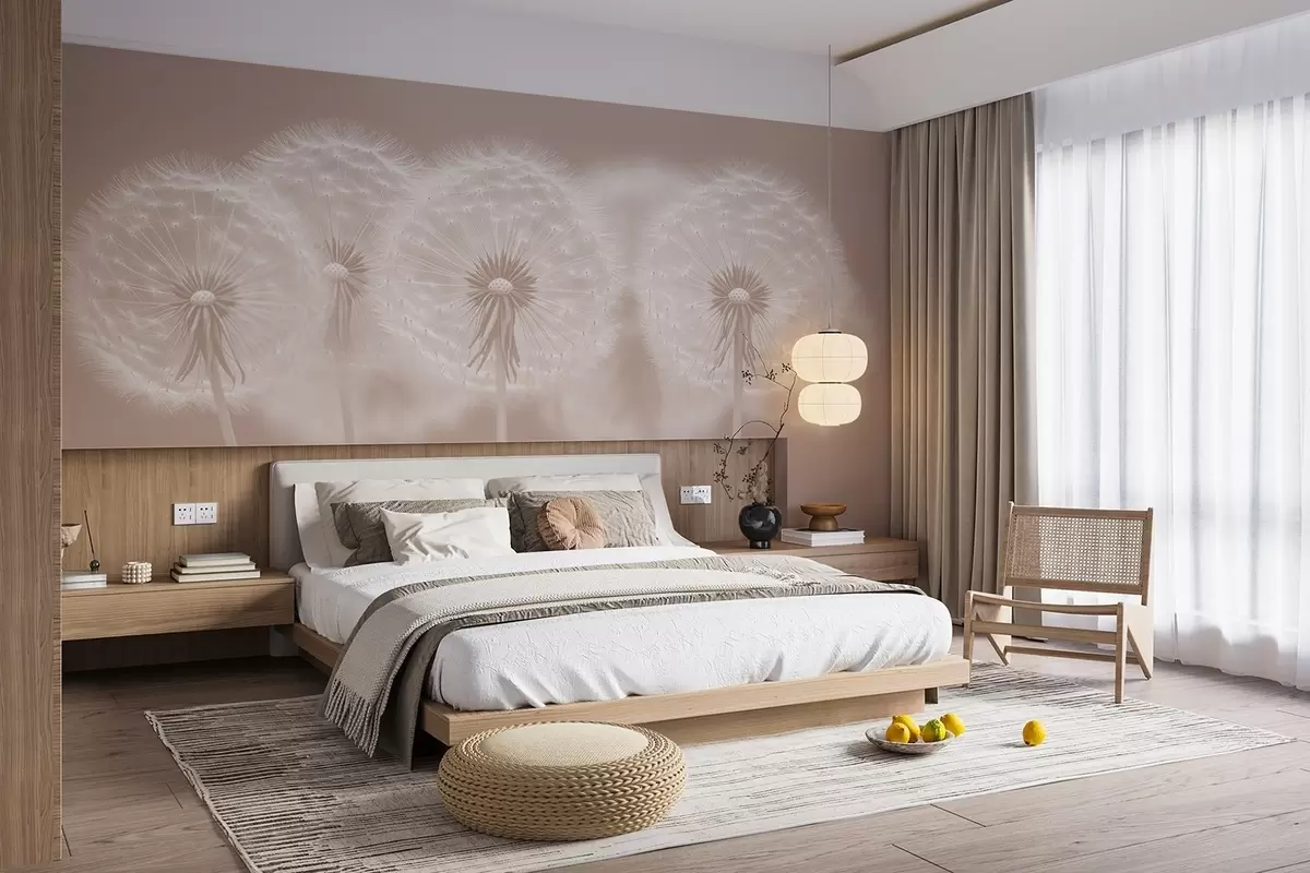 Fototapet Dandelions delicate roz aerisit pe un fundal natural roz Nr. w08498v1