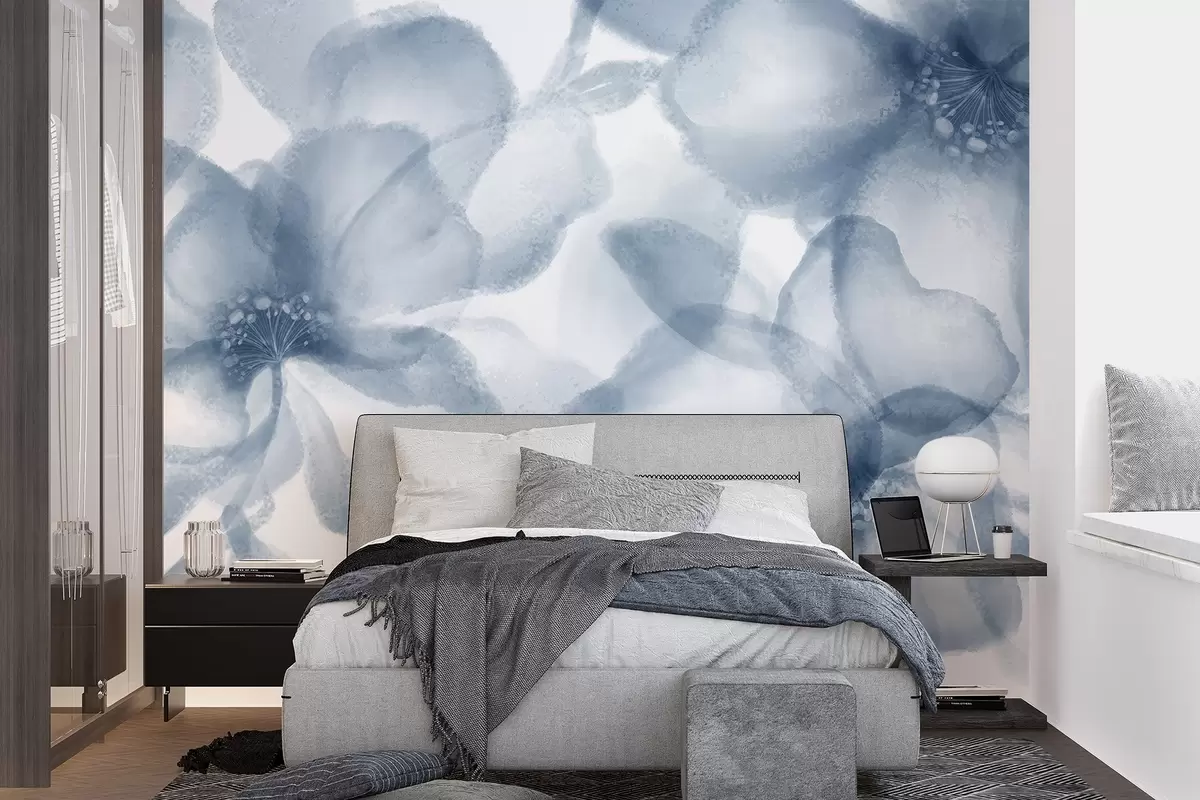 Fototapet Flori albastre abstracte, blurate, care creează un imprimeu floral senin și liniștitor Nr. w08607