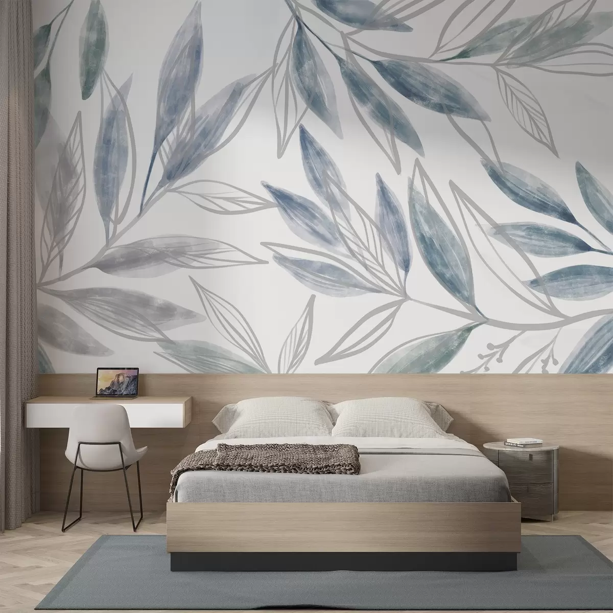 Fototapet Delicate albastru și gri frunze pastelate texturate , creând o compoziție botanică senină și minimalistă Nr. w08642v1