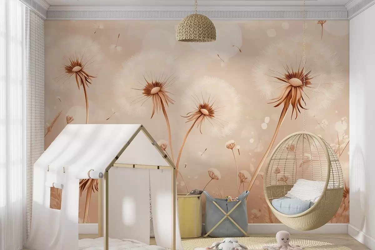 Fototapet Păpădii elegante și flori sălbatice în stilul picturii în tonuri calde Nr. w08657