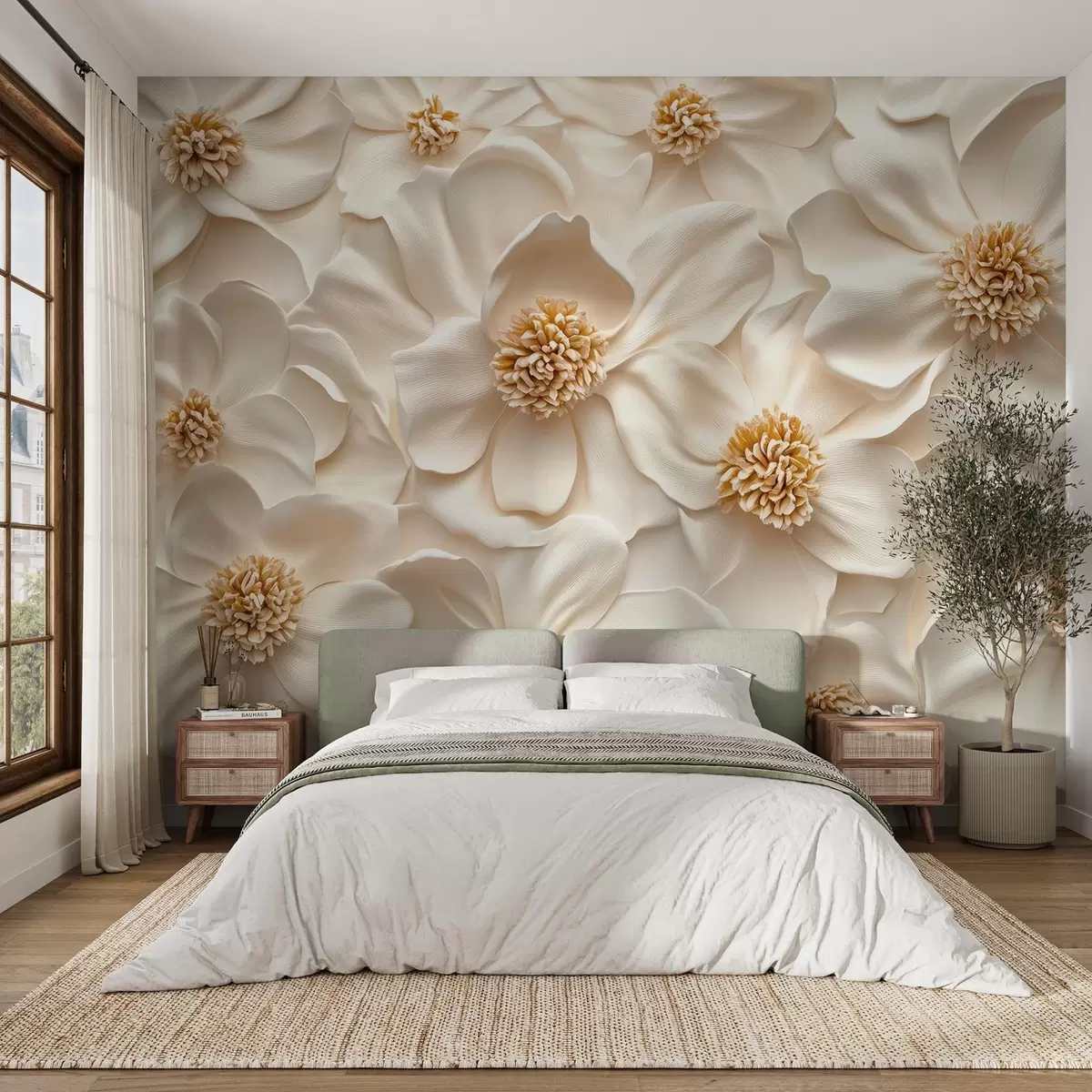 Fototapet compoziție florală 3D bej cu accente galbene Nr. w08691