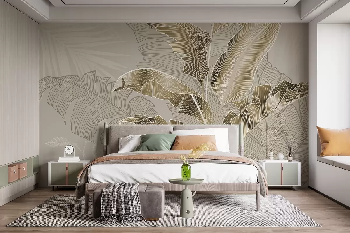 Fototapet O compoziție armonioasă de frunze tropicale în nuanțe de bej și maro, cu linii detaliate Nr. w08698