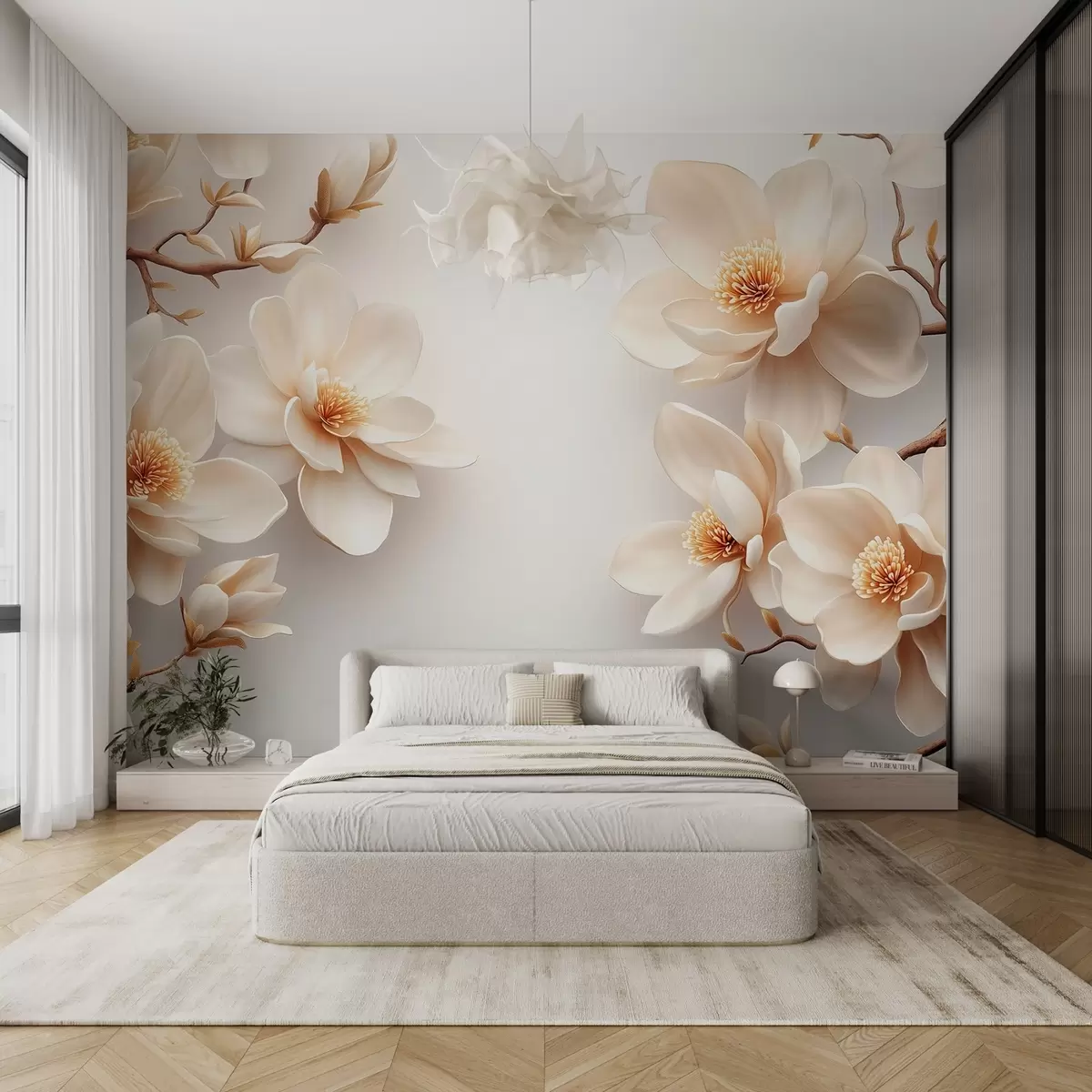 Fototapet Frumoase flori de magnolie de culoare crem pe un fundal alb Nr. w08704